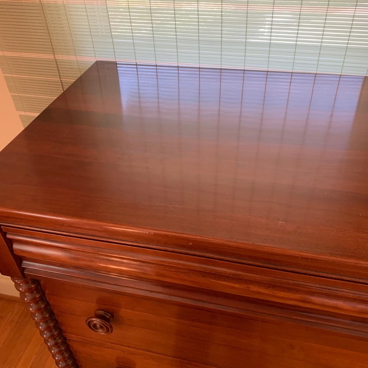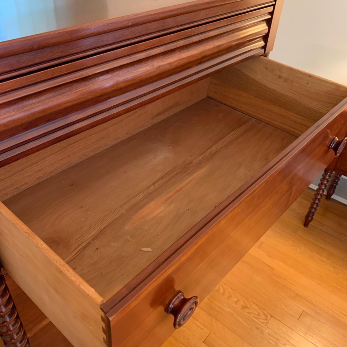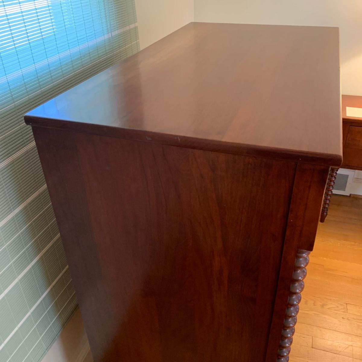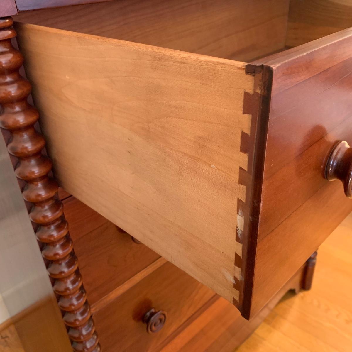 Beautiful solid cherry wood five drawer chest of drawers (No. 900) from Burris Manufacturing Co. in Lincolnton, NC. All drawers are dovetailed. The chest measures 36” x 20” x 48.5”. It is in very good condition. There are just a few very small scratches on the top surface, noted in photos. Local pickup only. The winning bidder will need to bring help to move this item down one flight of stairs.