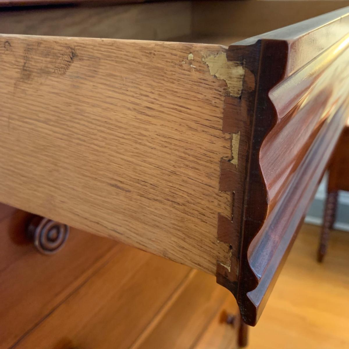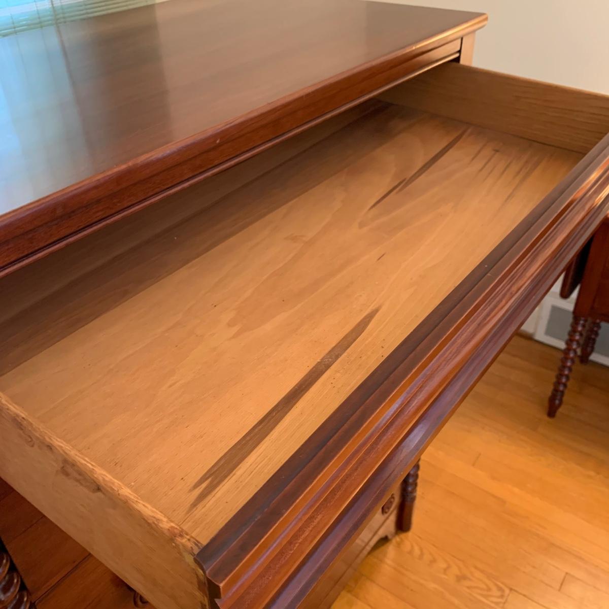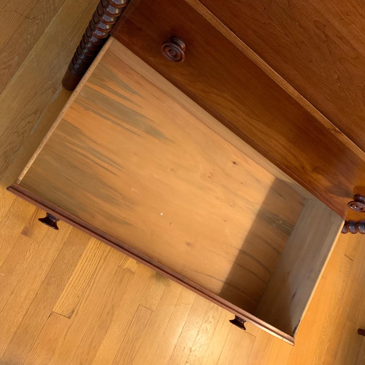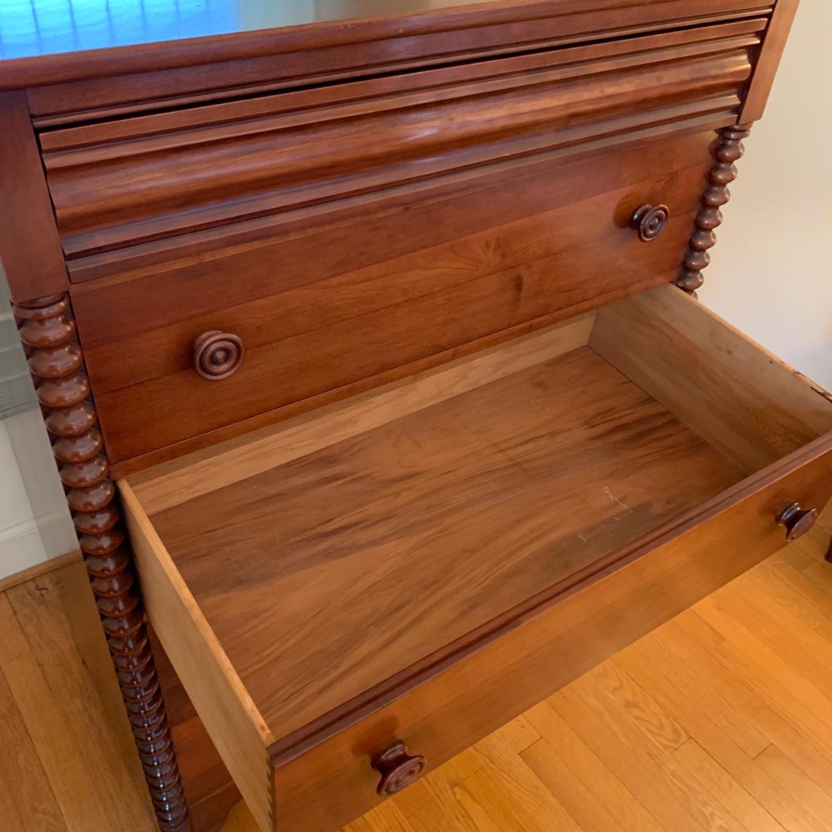 Beautiful solid cherry wood five drawer chest of drawers (No. 900) from Burris Manufacturing Co. in Lincolnton, NC. All drawers are dovetailed. The chest measures 36” x 20” x 48.5”. It is in very good condition. There are just a few very small scratches on the top surface, noted in photos. Local pickup only. The winning bidder will need to bring help to move this item down one flight of stairs.