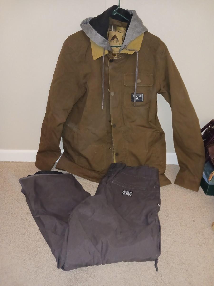 BURTON SKI JACKET (L) AND 686 SKI PANTS (XL)