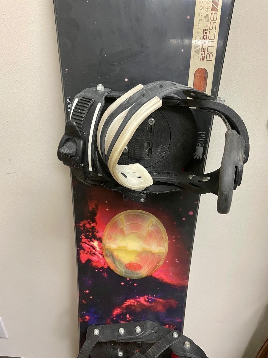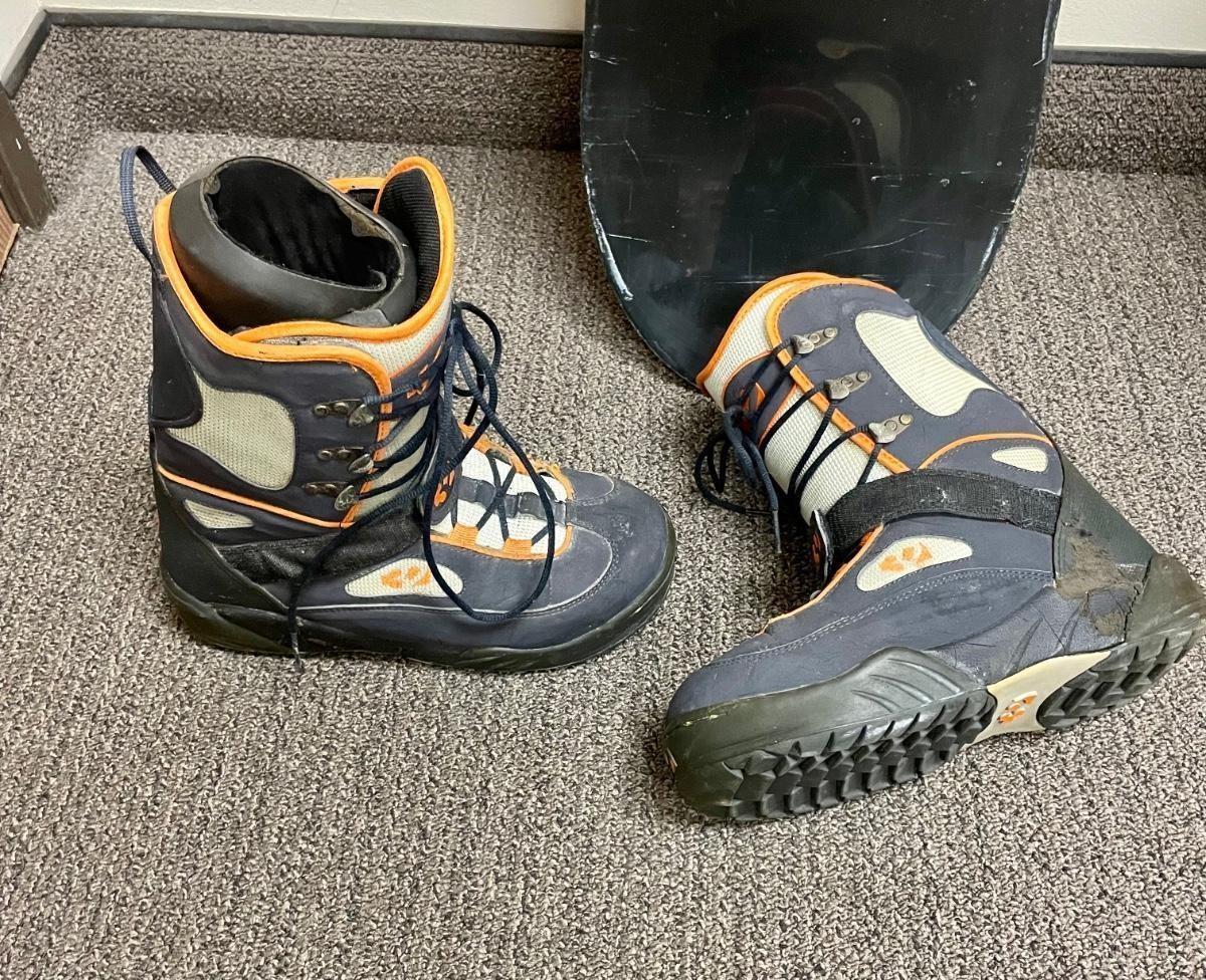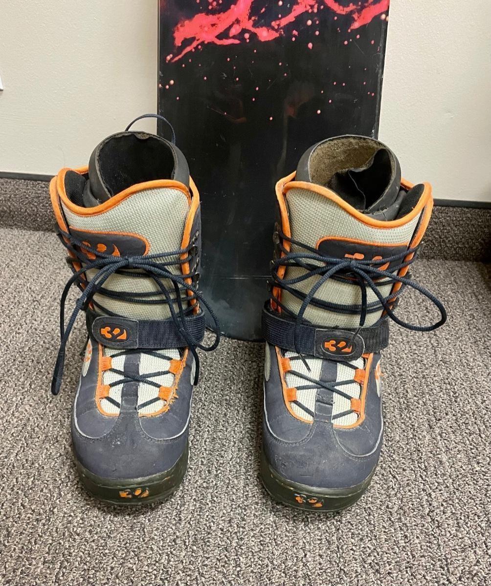 Used Burton BMS56 snowboard with bindings and “˜32’ size 9 men’s boots. Boots are made in Korea. All seem to be from 2000-2001.