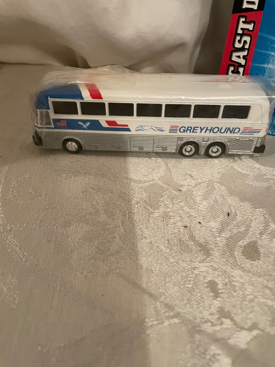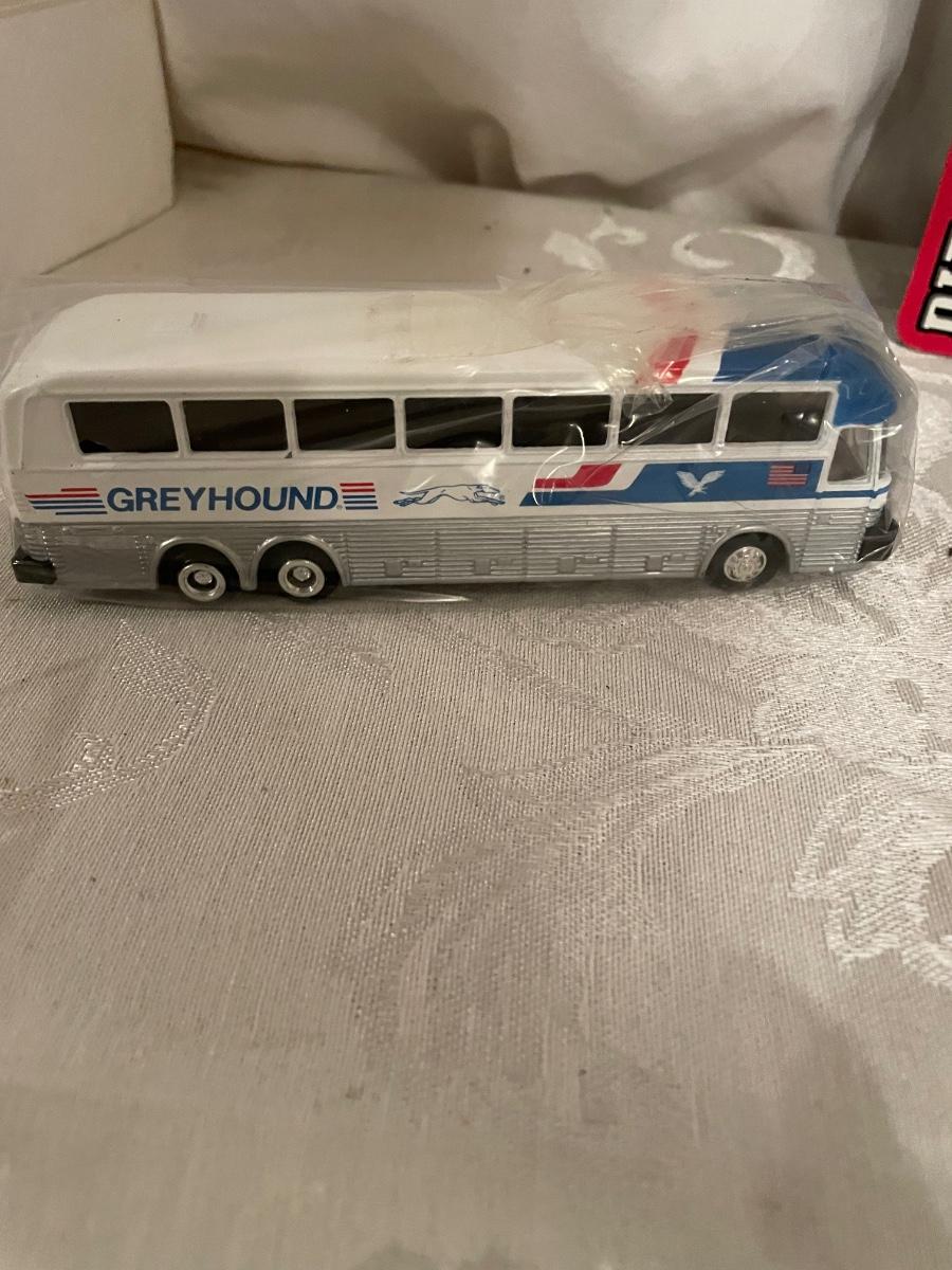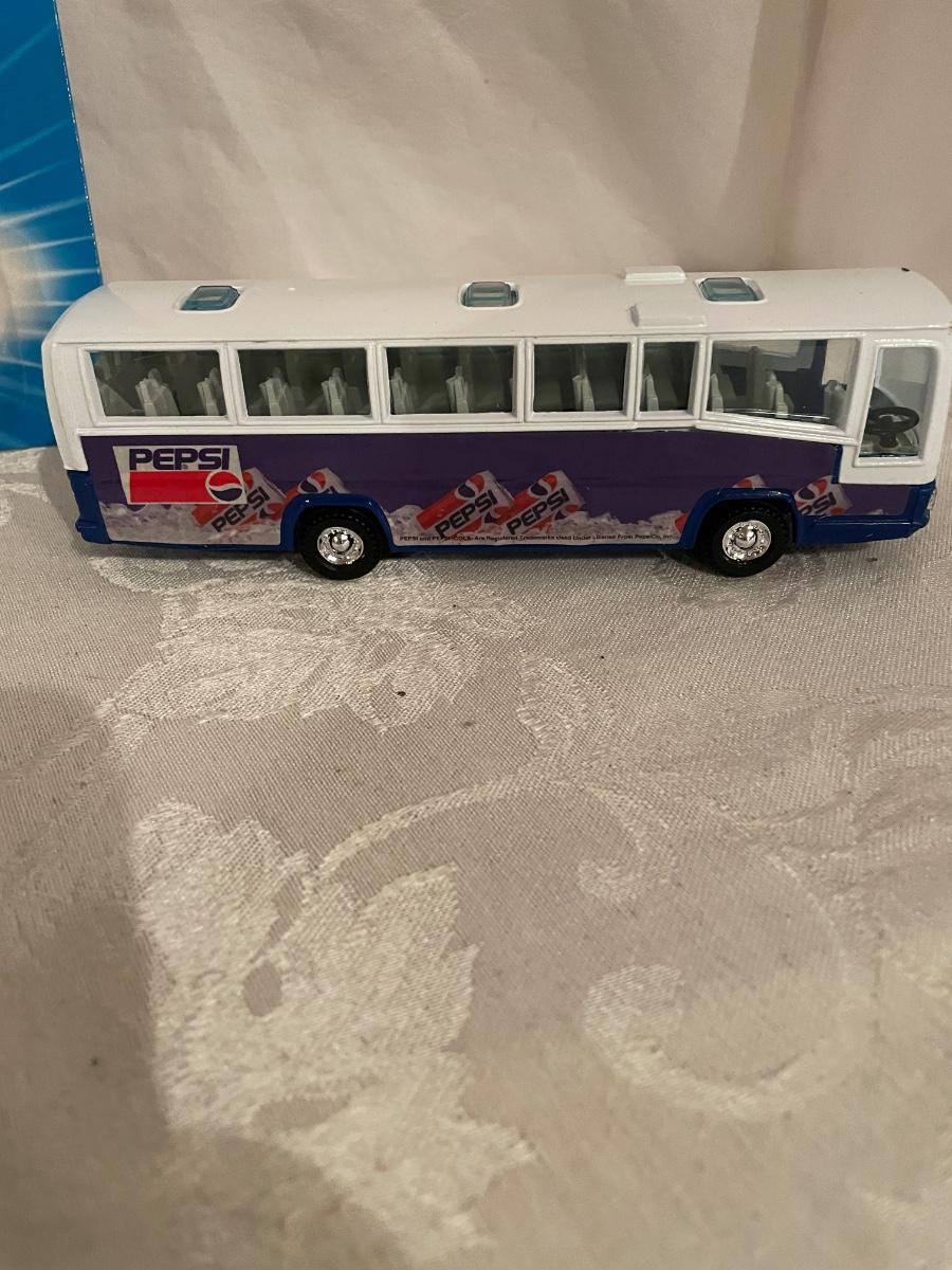 Includes three buses School bus, Greyhound bus and a Pepsi-Cola bus