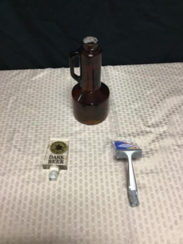One Anheuser Busch Dark Beer handle, One Busch Bavarian Beer handle, one old cup with handle