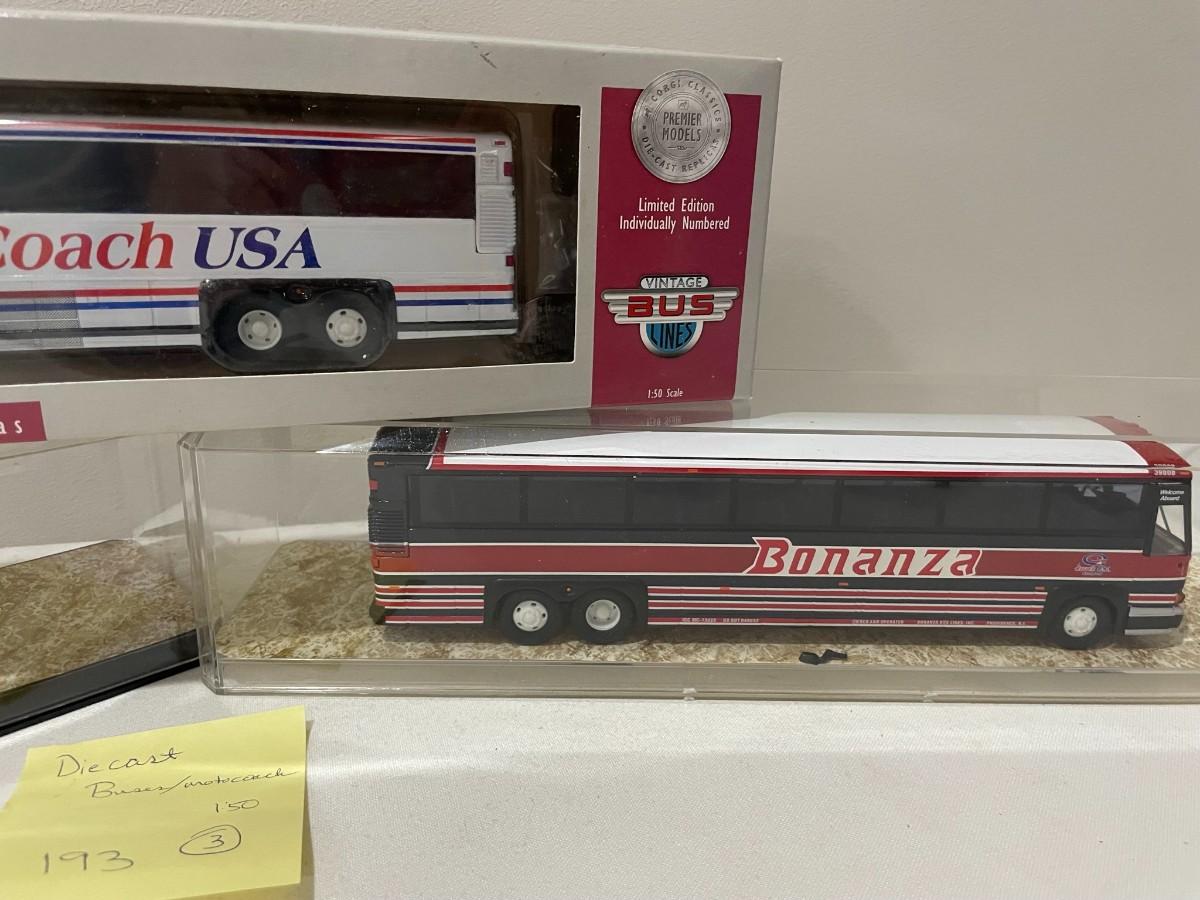 3 Buses - 1 New Coach, 2 Coach Diecast in case - 1:50 Scale