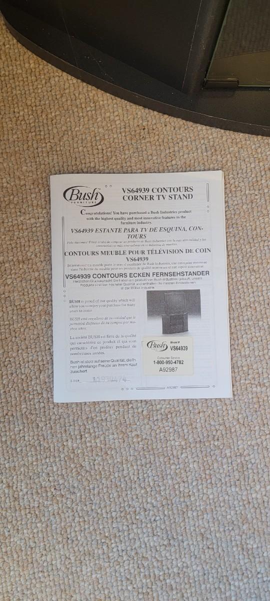 Bush VS64939 corner TV Stand across top 40" 26" H 24" corner