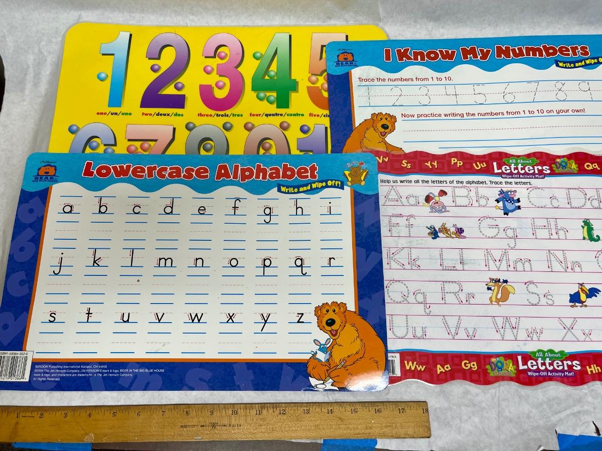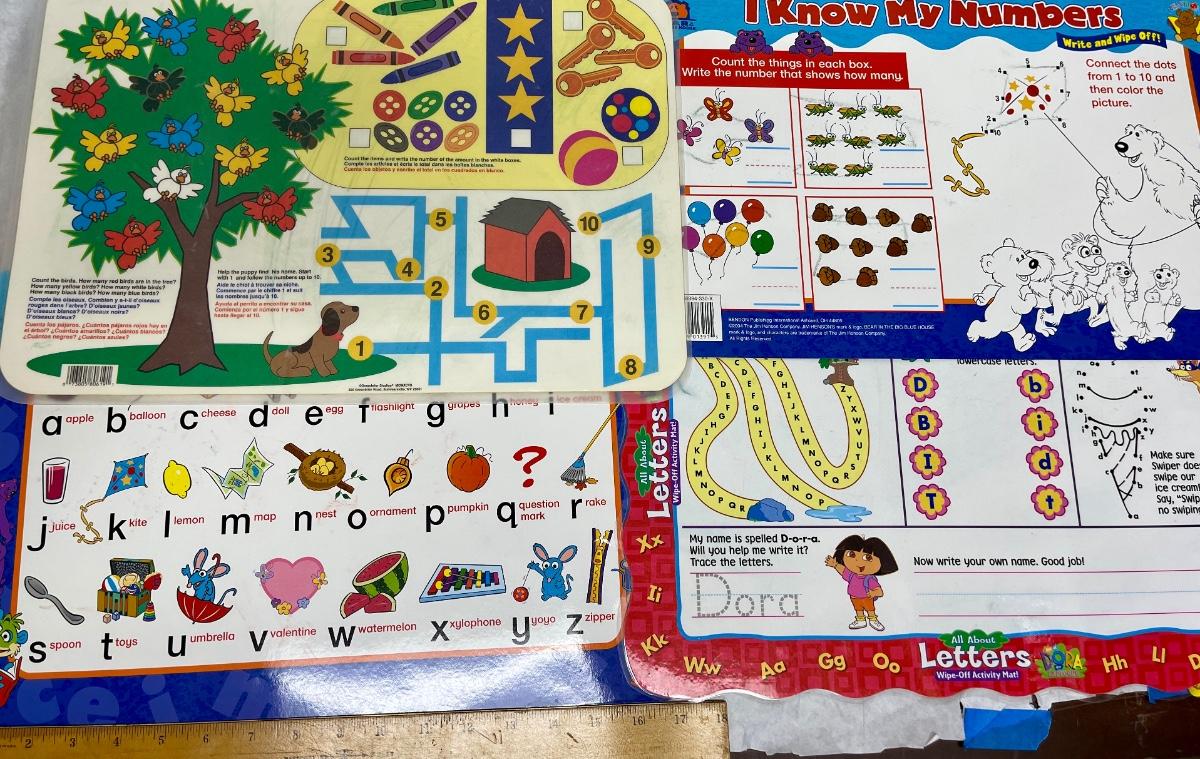 Lot of 4 Vinyl placemats for learning alphabet and numbers, etc