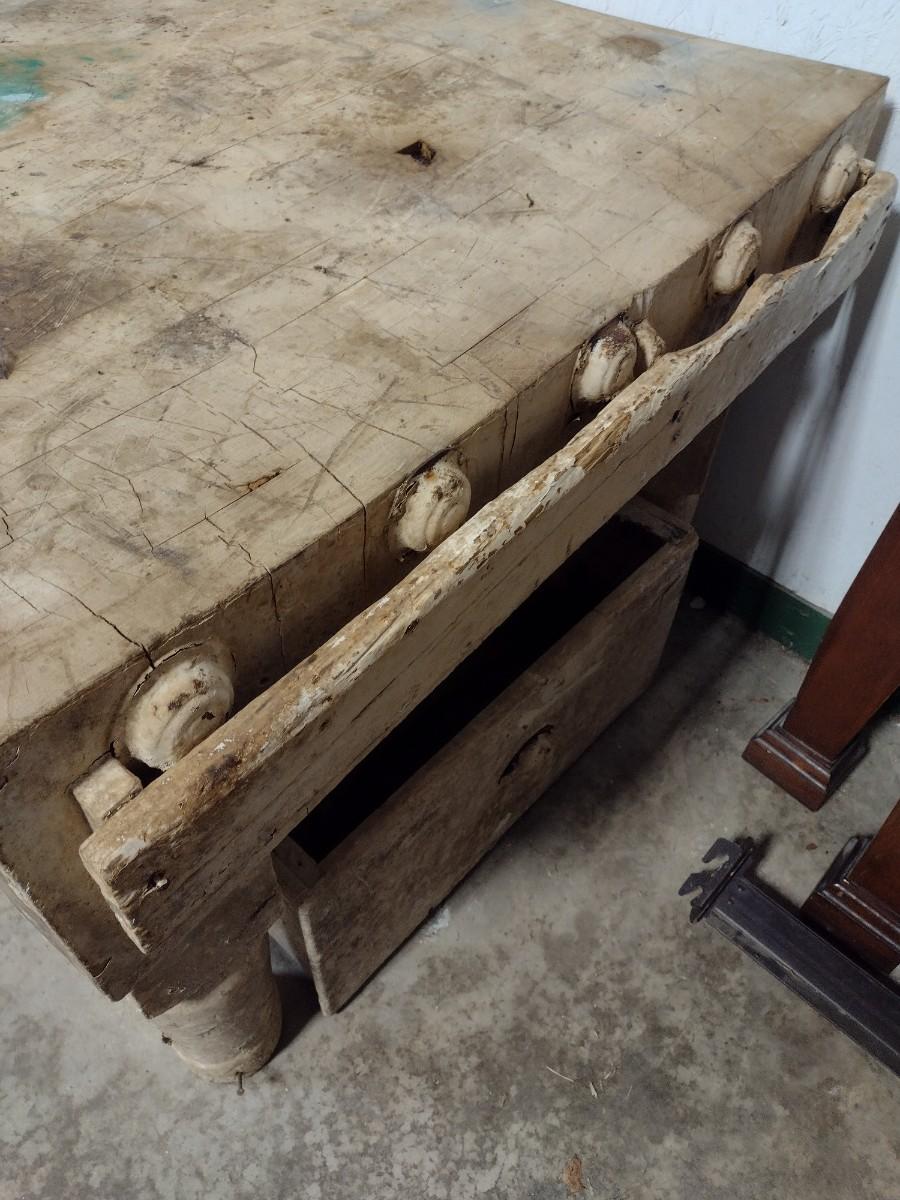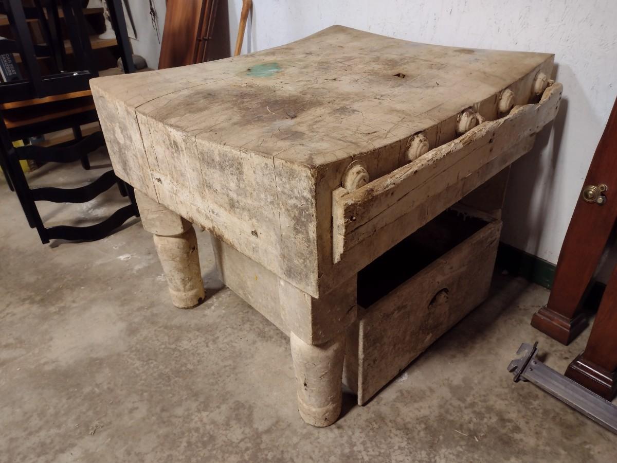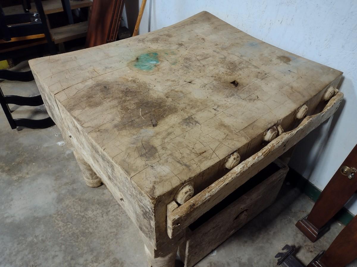 Vintage 10" Thick Solid Wood Butcher Block Table with Lower Drawer