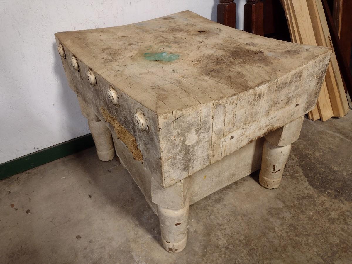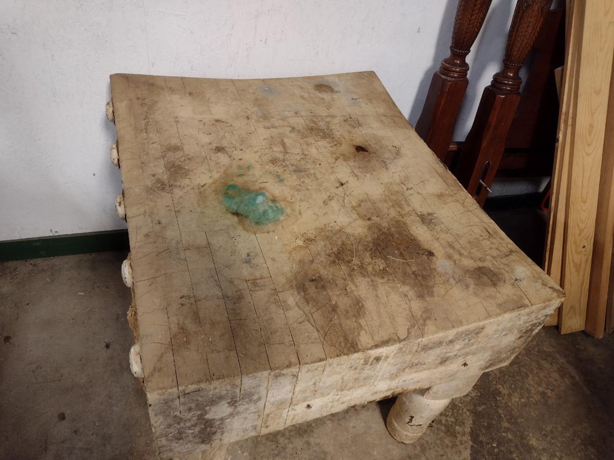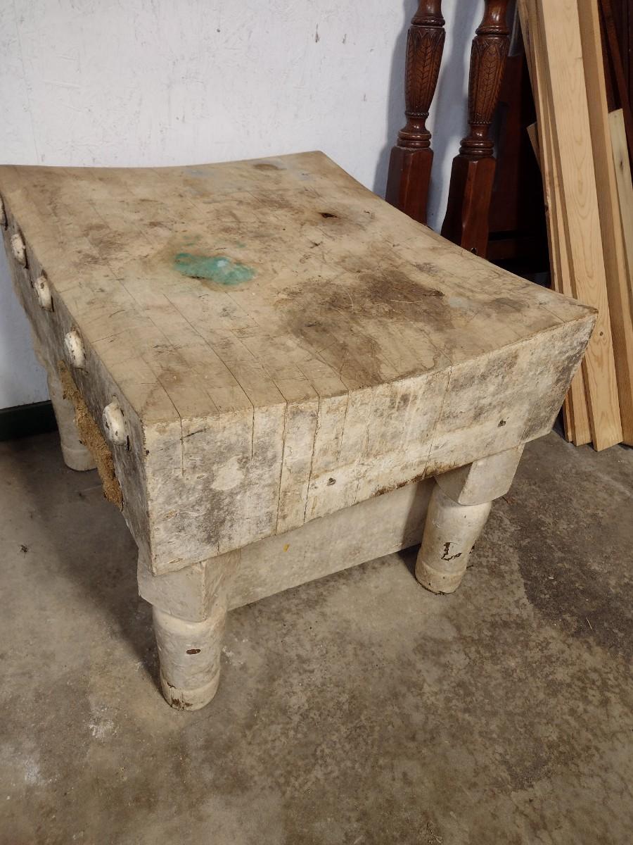 Vintage 10" Thick Solid Wood Butcher Block Table with Lower Drawer