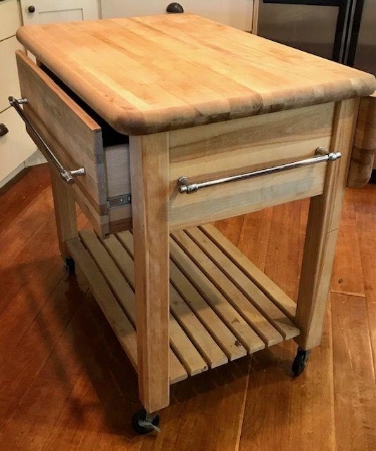 Butcher Block Kitchen Island On Rollers. Local pick up only in Auburn, CA.
