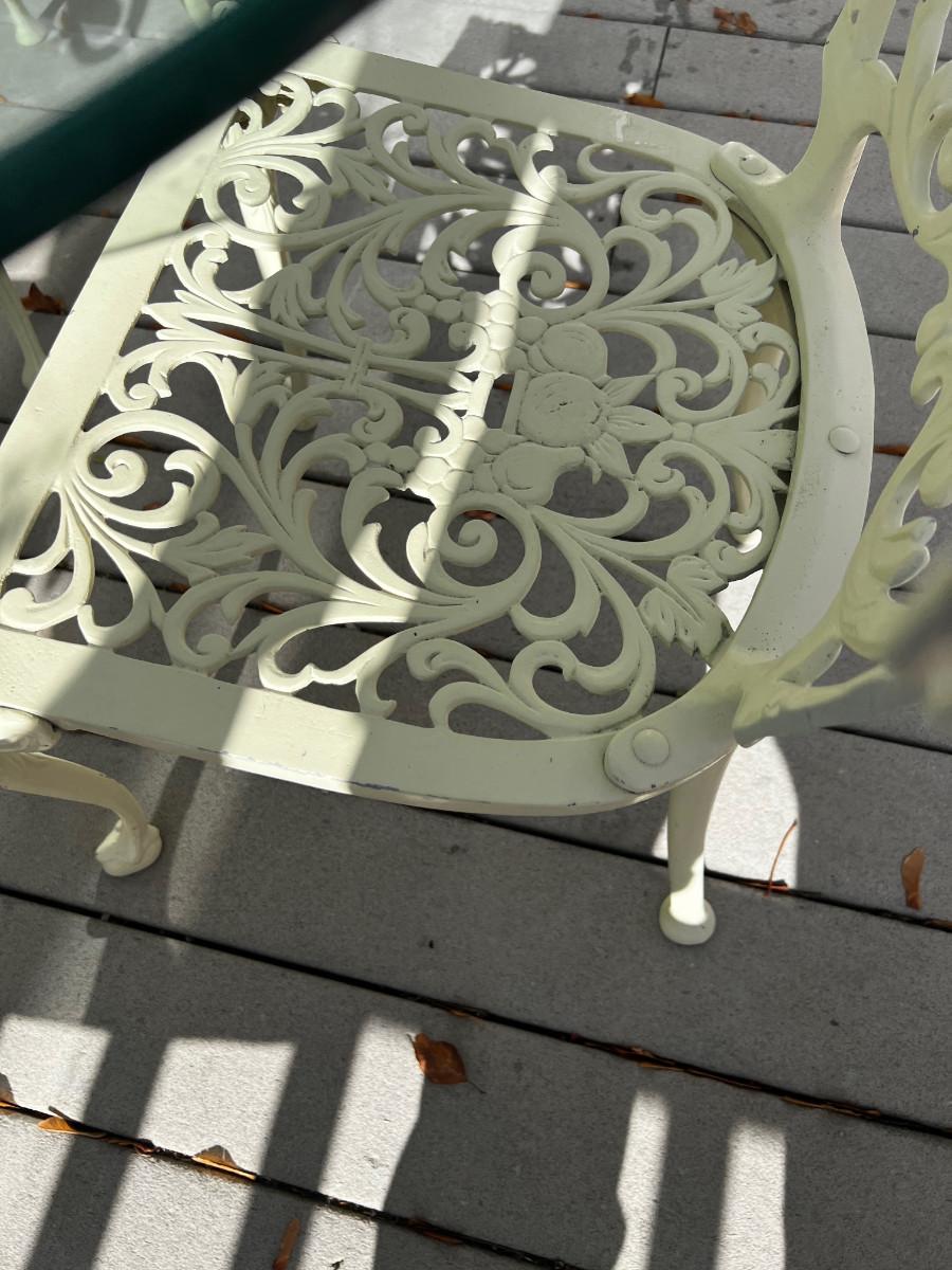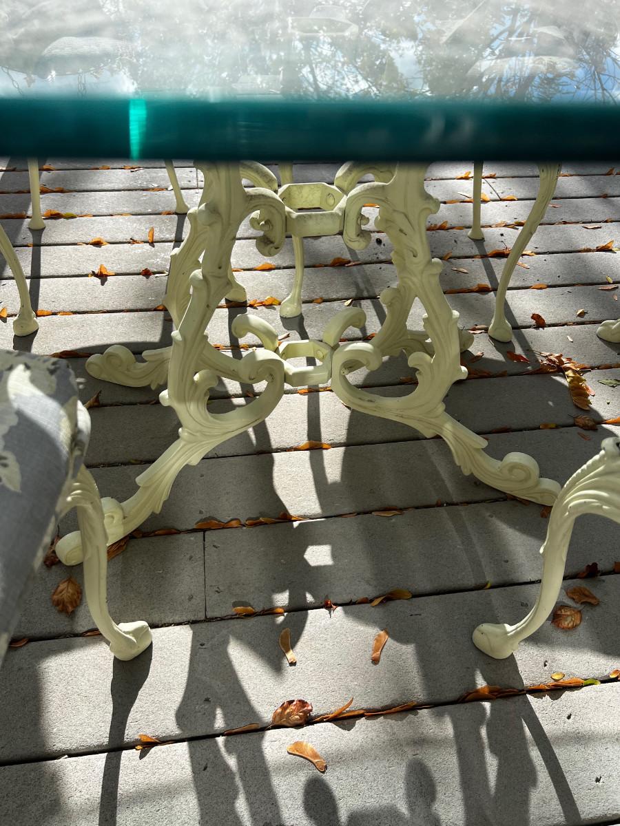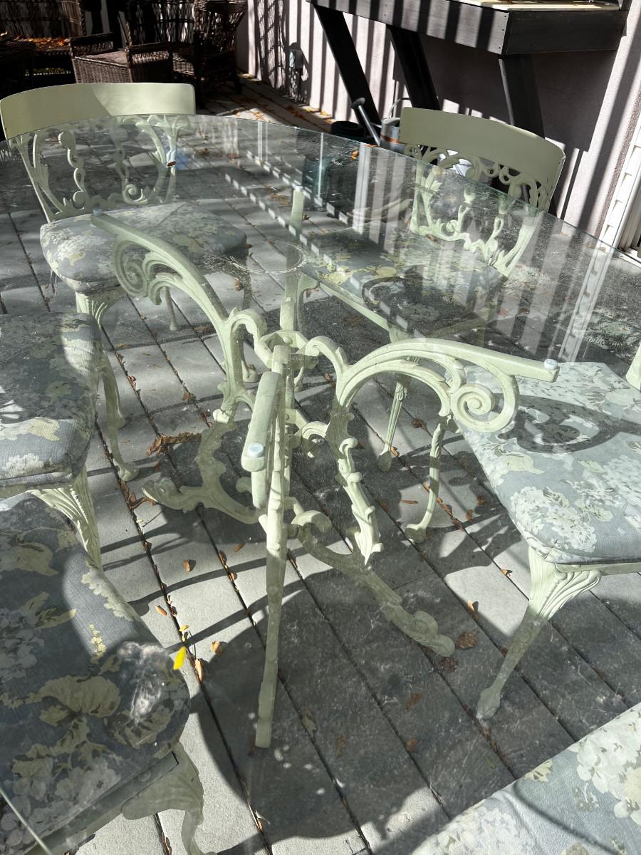BUTTER Iron Decorative Ornate Table and 6 Chairs with Glass Top Table