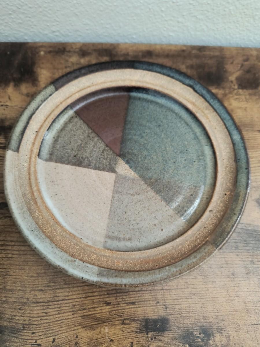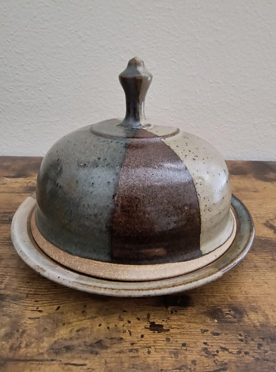 Studio hand thrown pottery covered Cheese Butter Plate signed