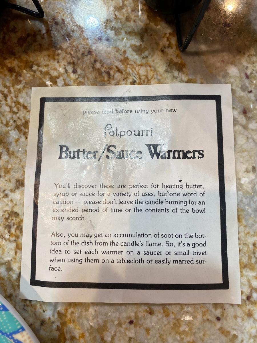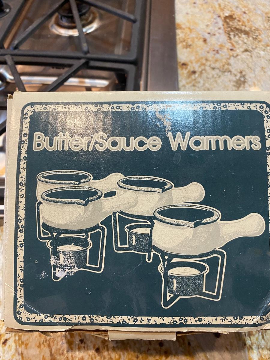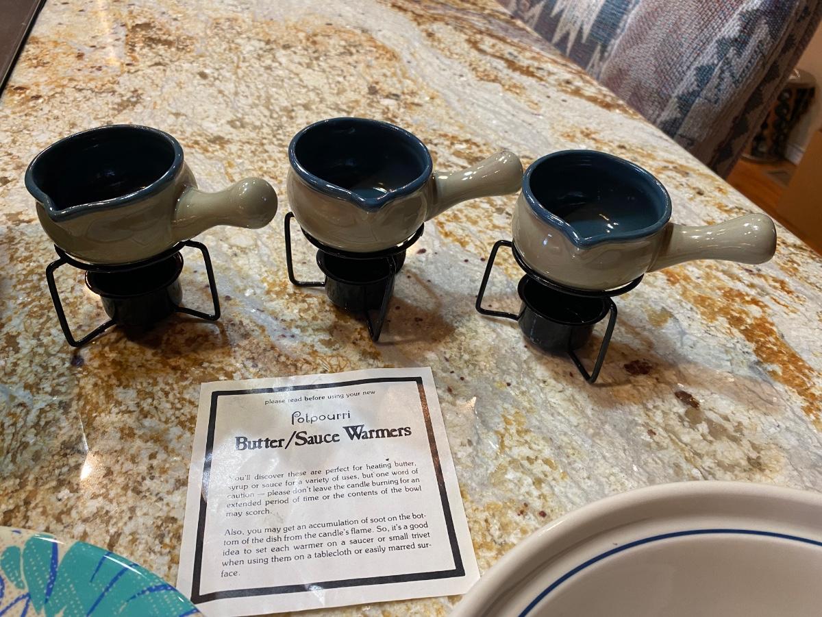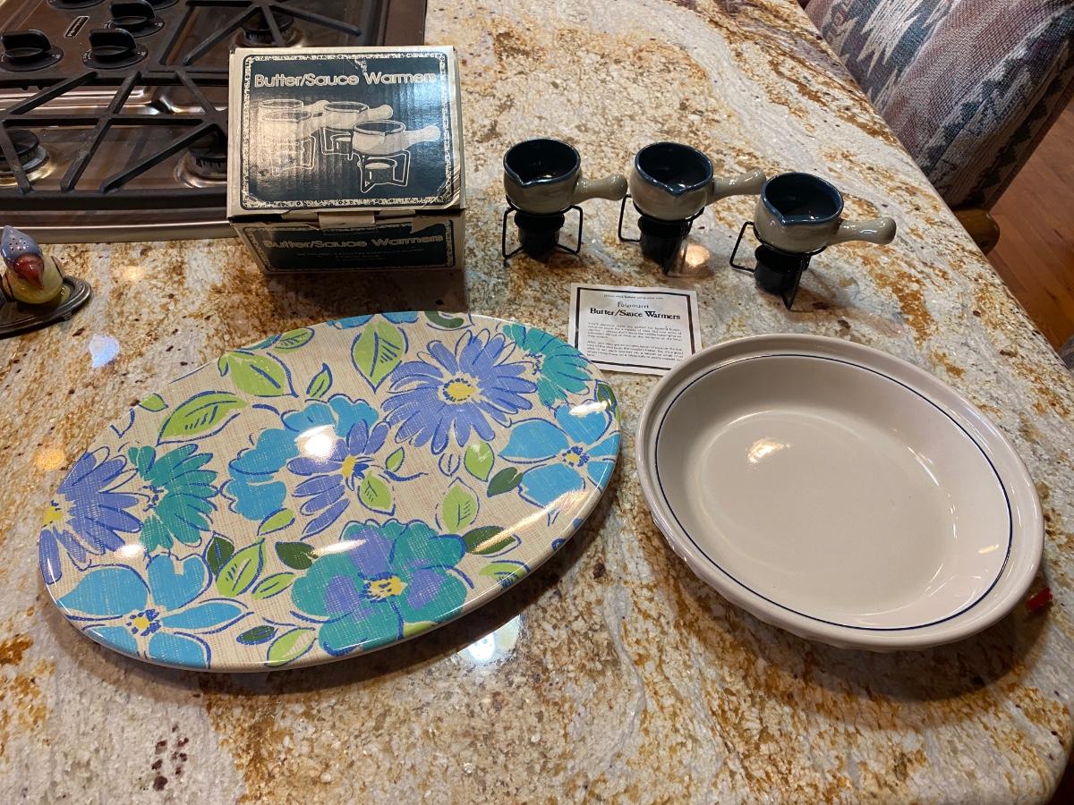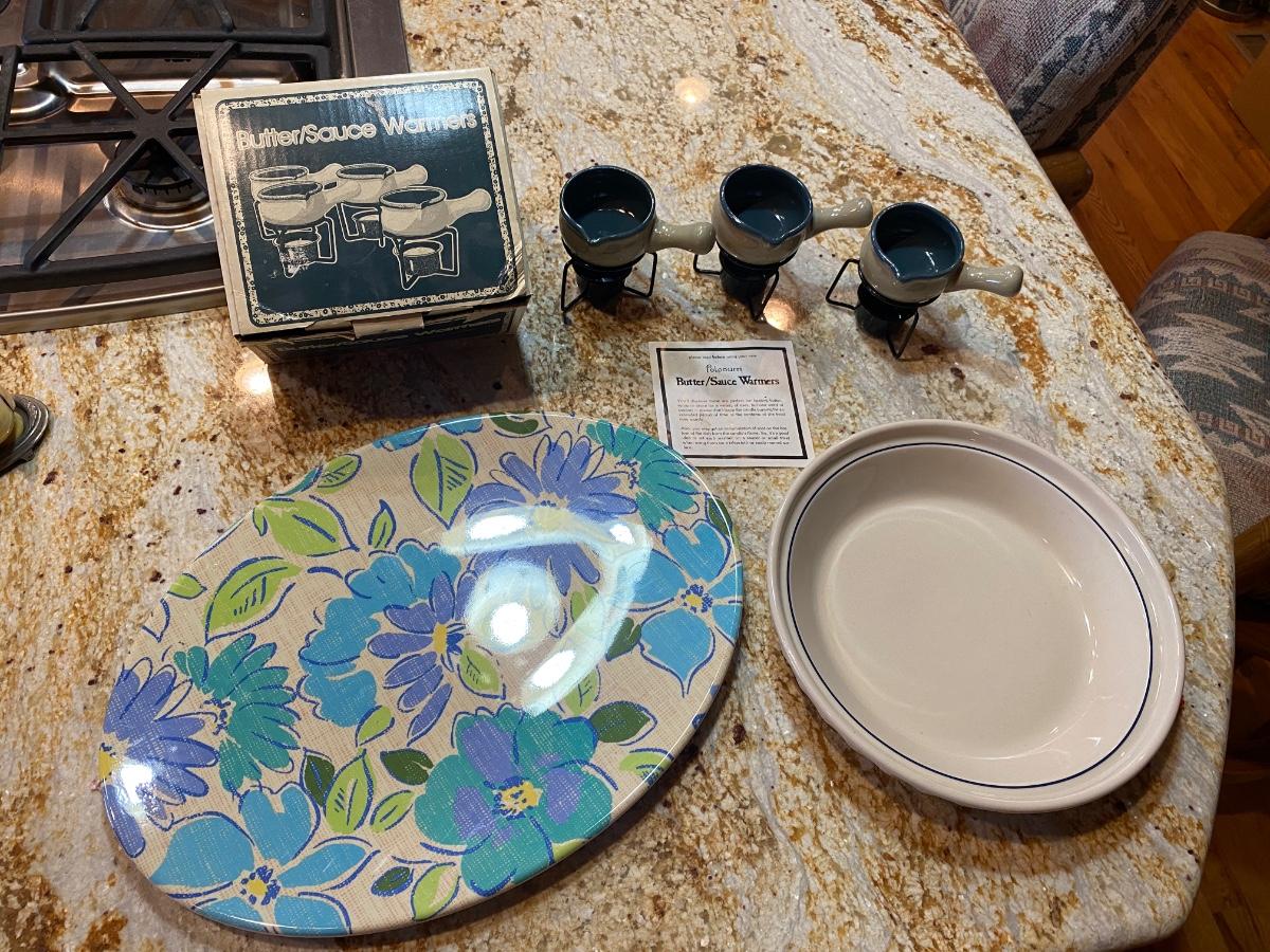 BUTTER WARMERS, PIE PAN, AND SERVING PLATTER