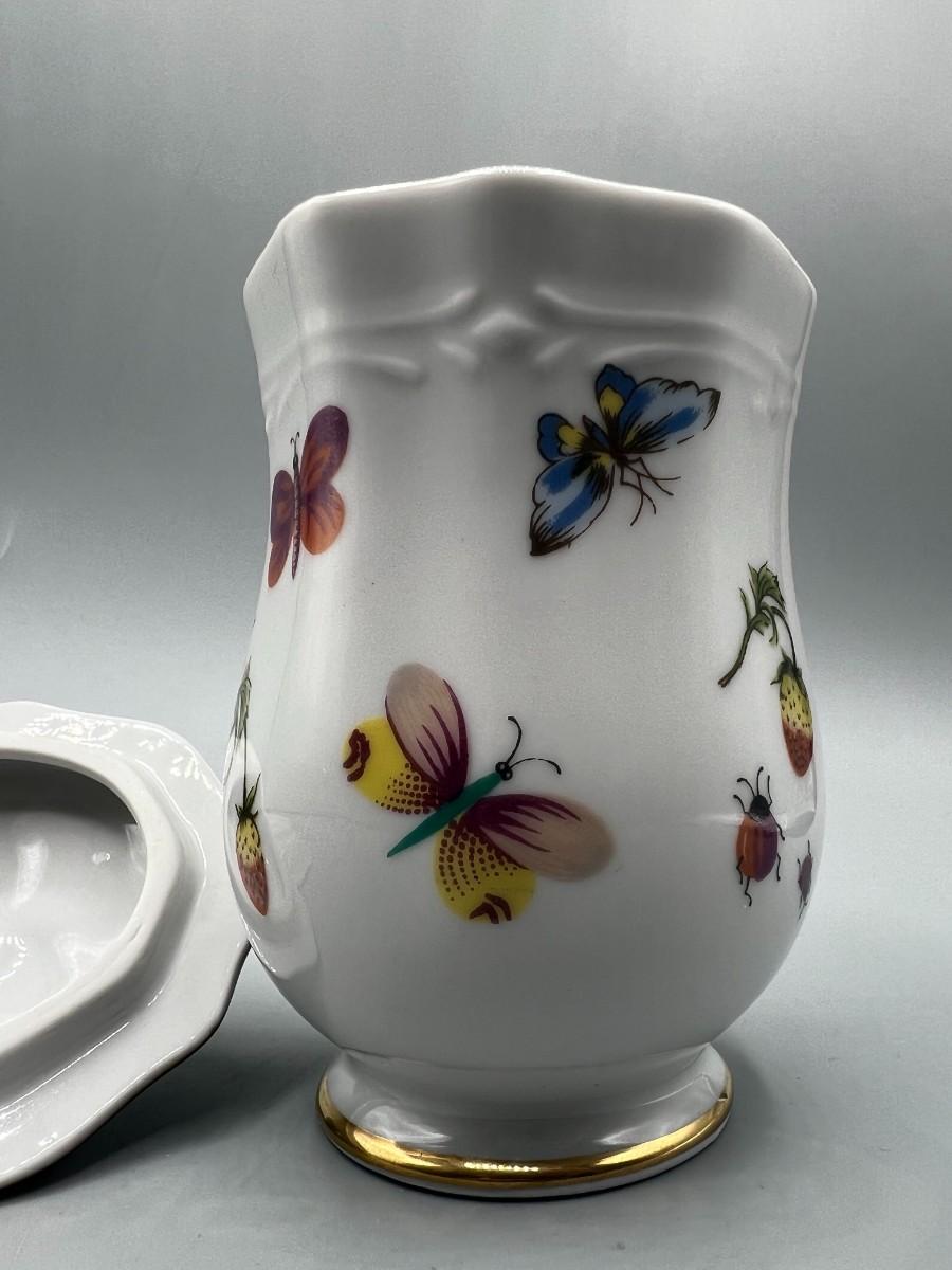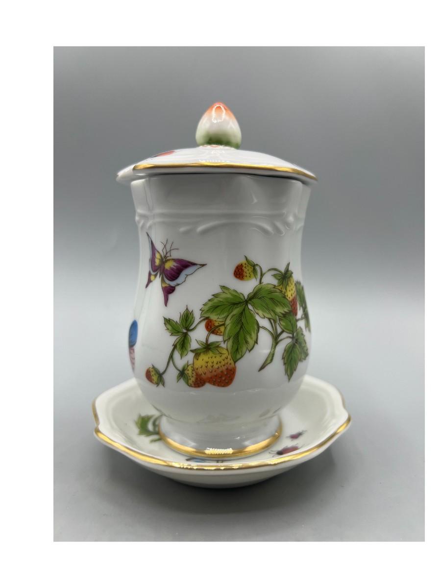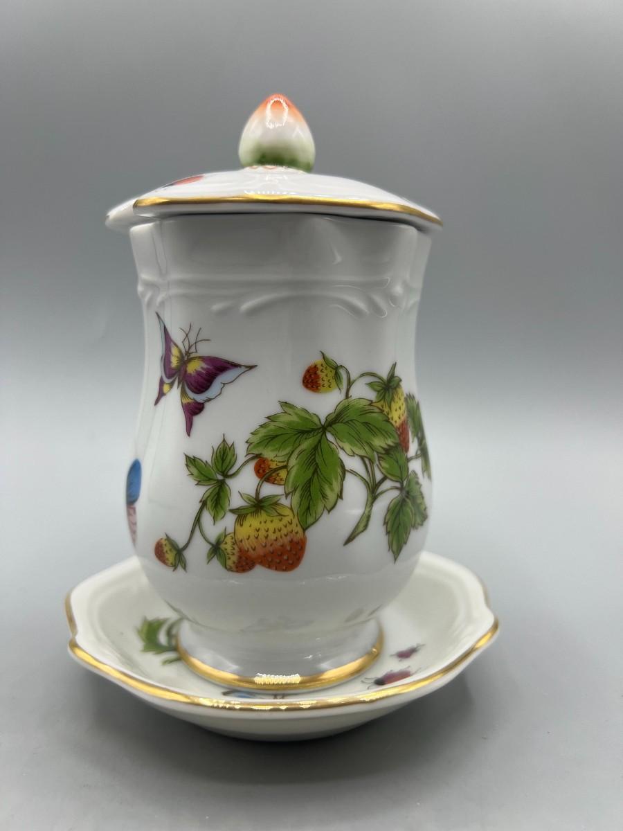Butterfly Berry Motif Design Ceramic Sugar Serving Dish & Cup