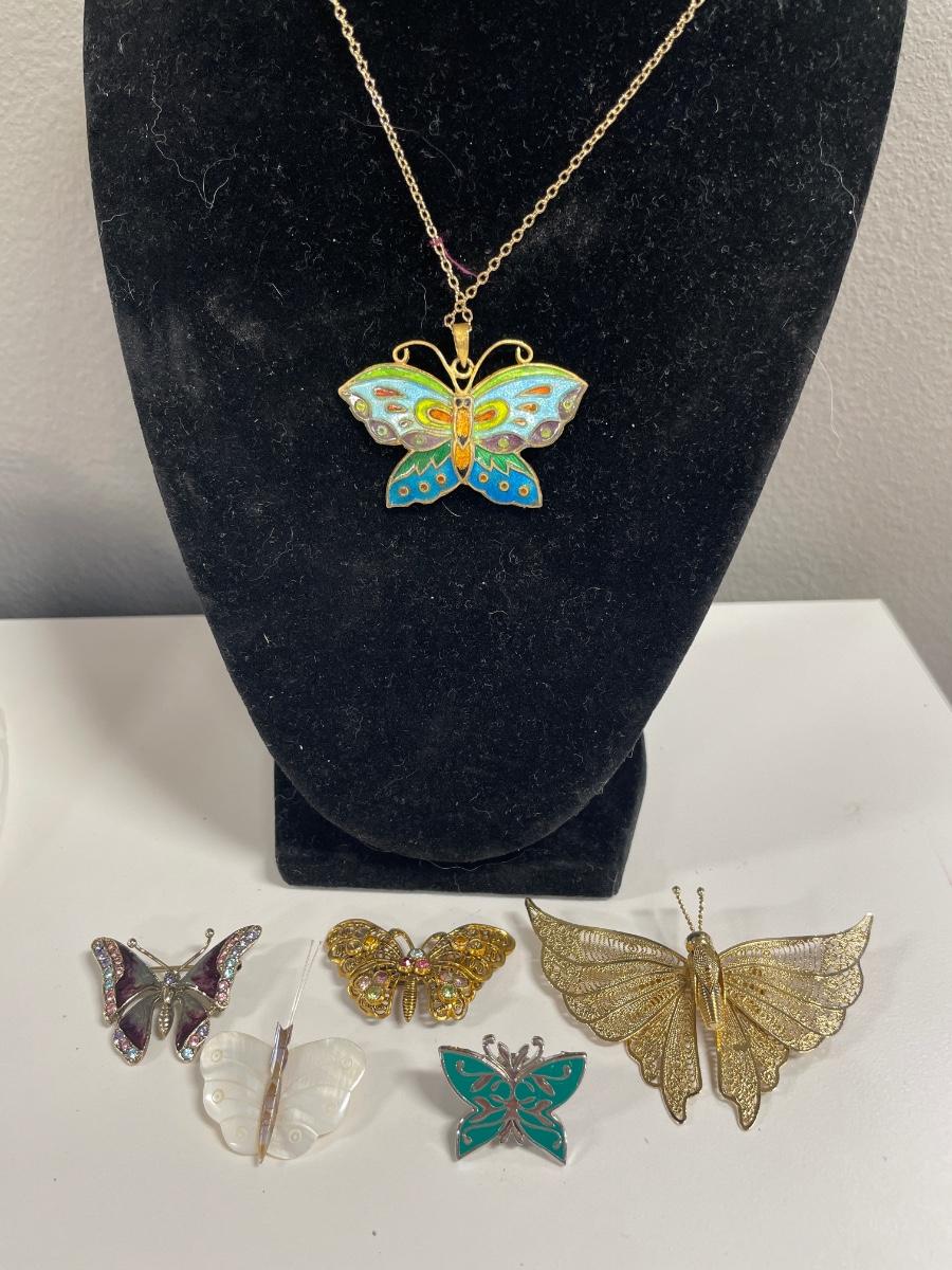 Butterfly brooches and necklace