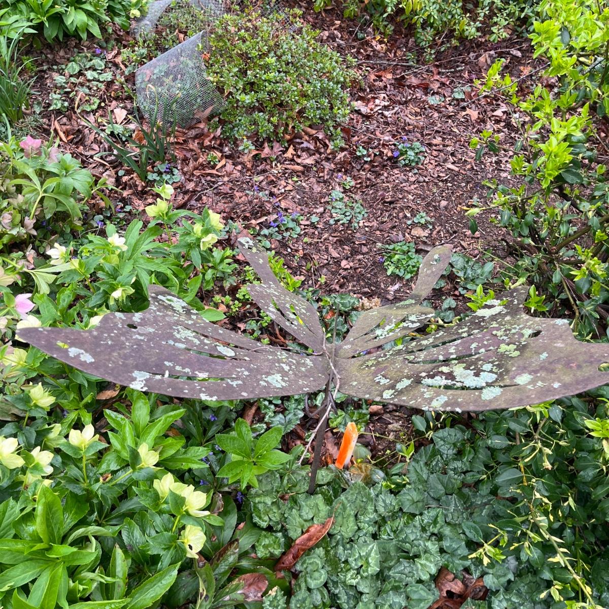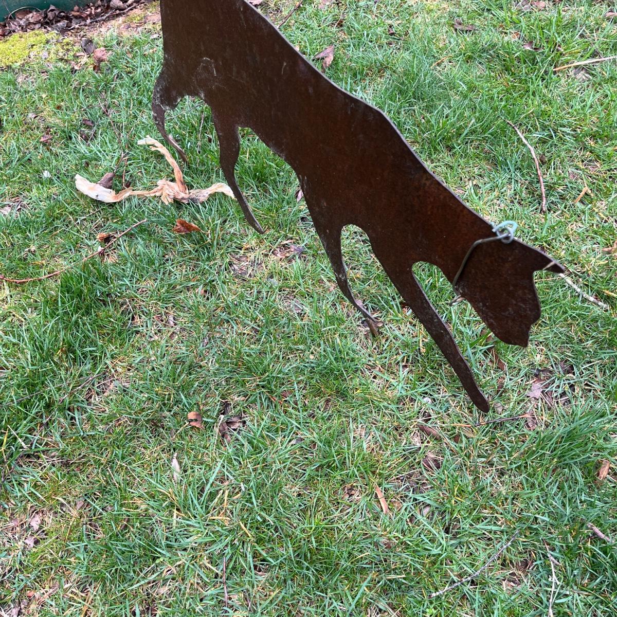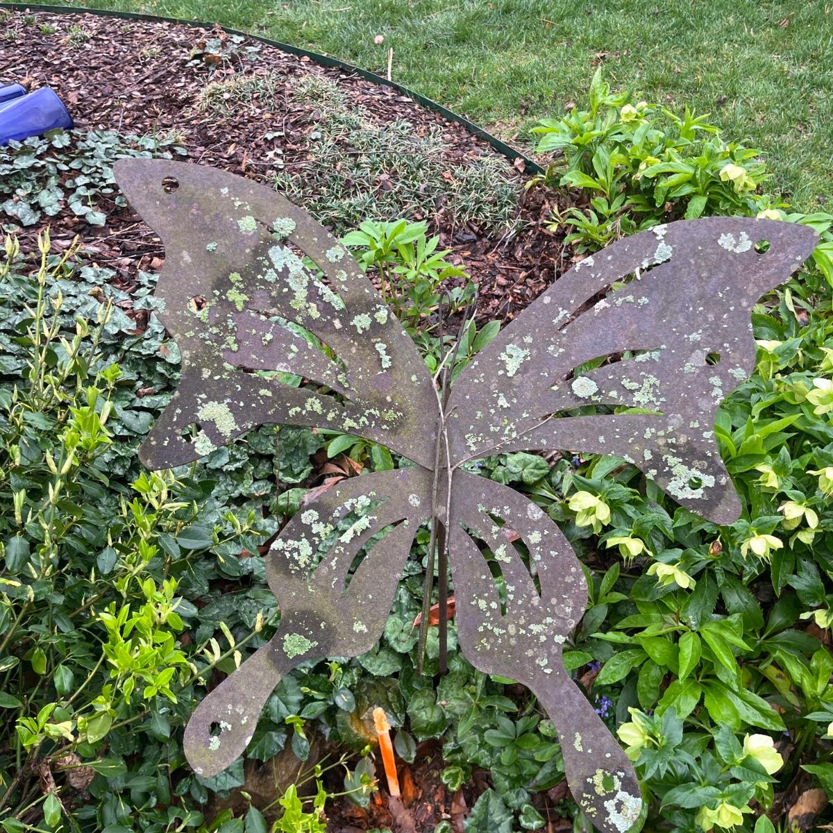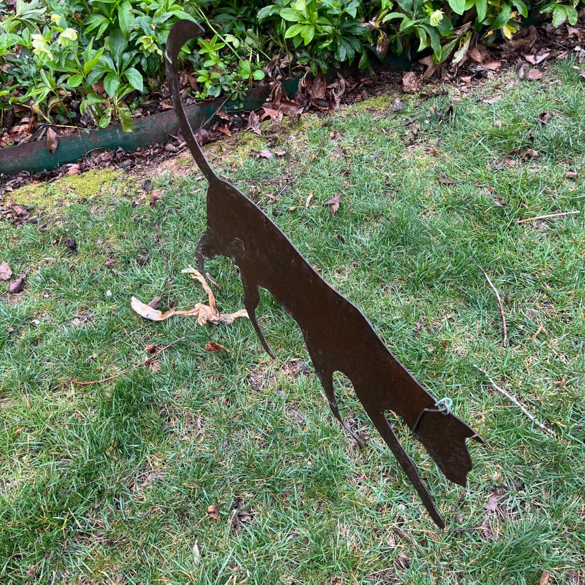 Lot includes a metal cat yard art and a metal butterfly piece of yard art that measures 27” x 23” x 35”H as pictured.