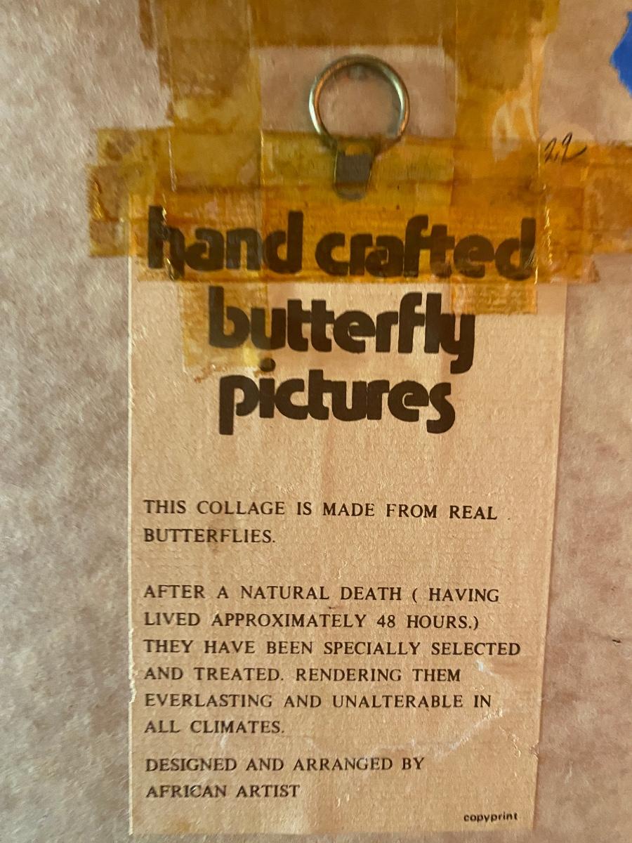 Collage made from real butterflies wings. Made by African artists. 14" x 9"