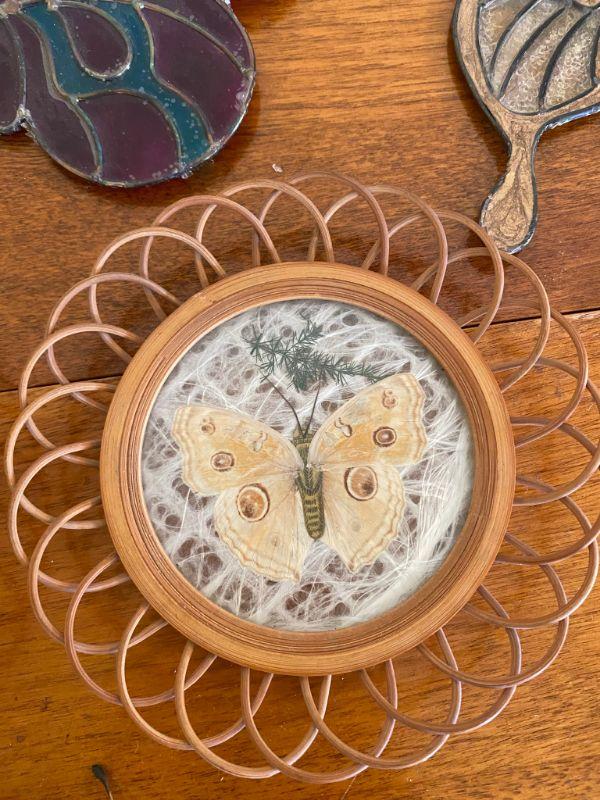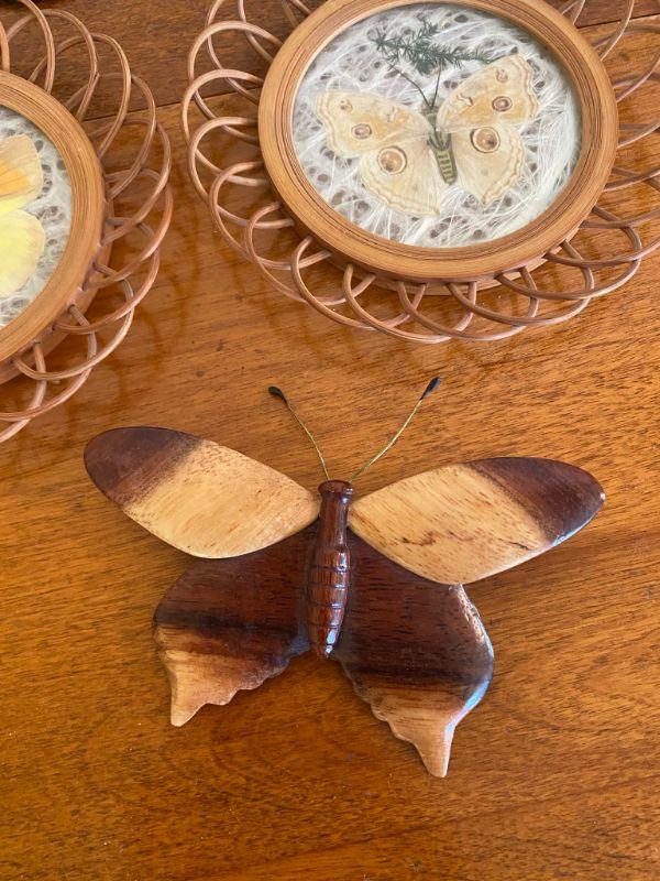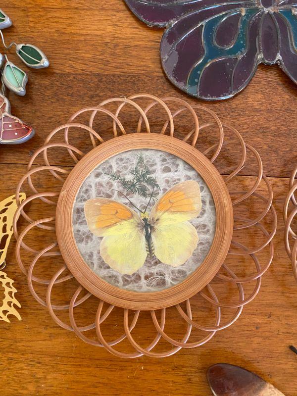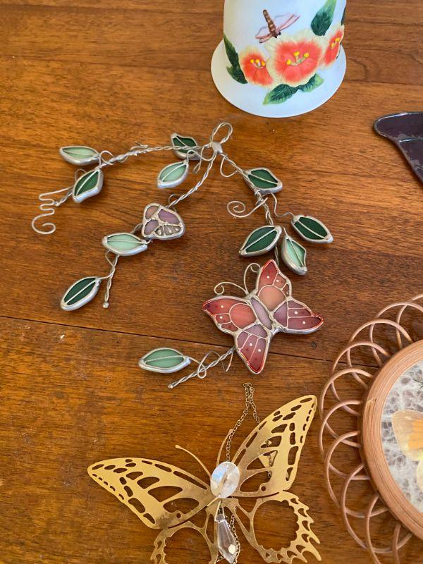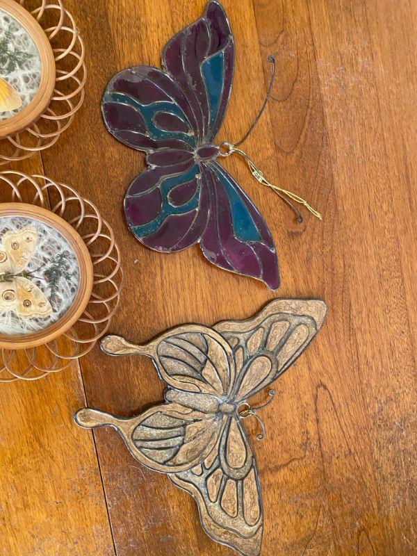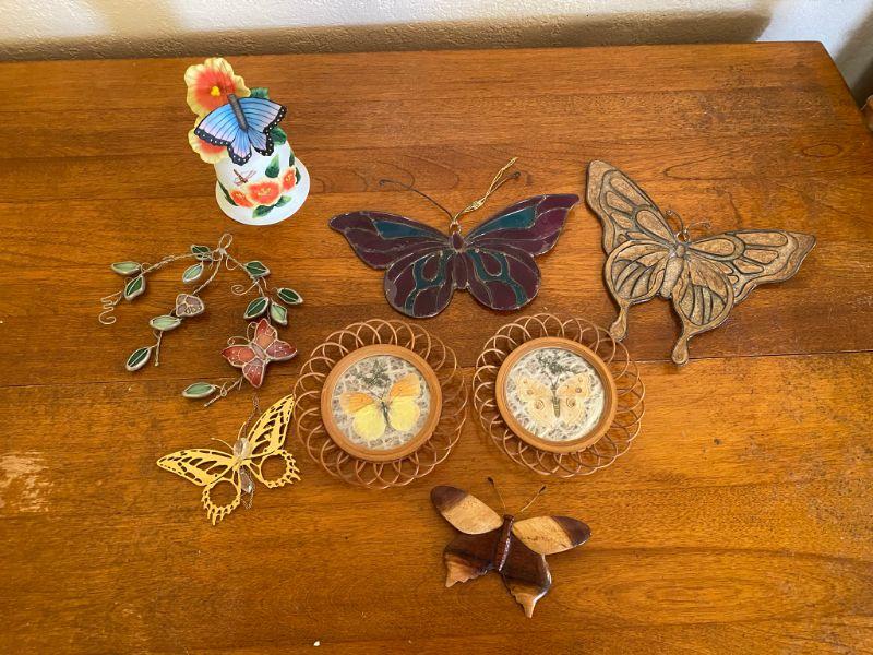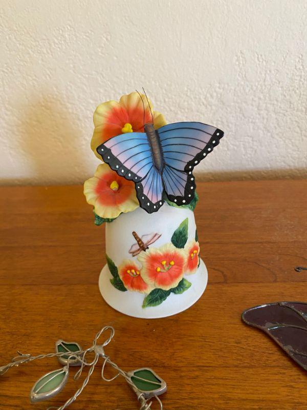 Butterfly decor lot. One bell and 7 wall art pieces.