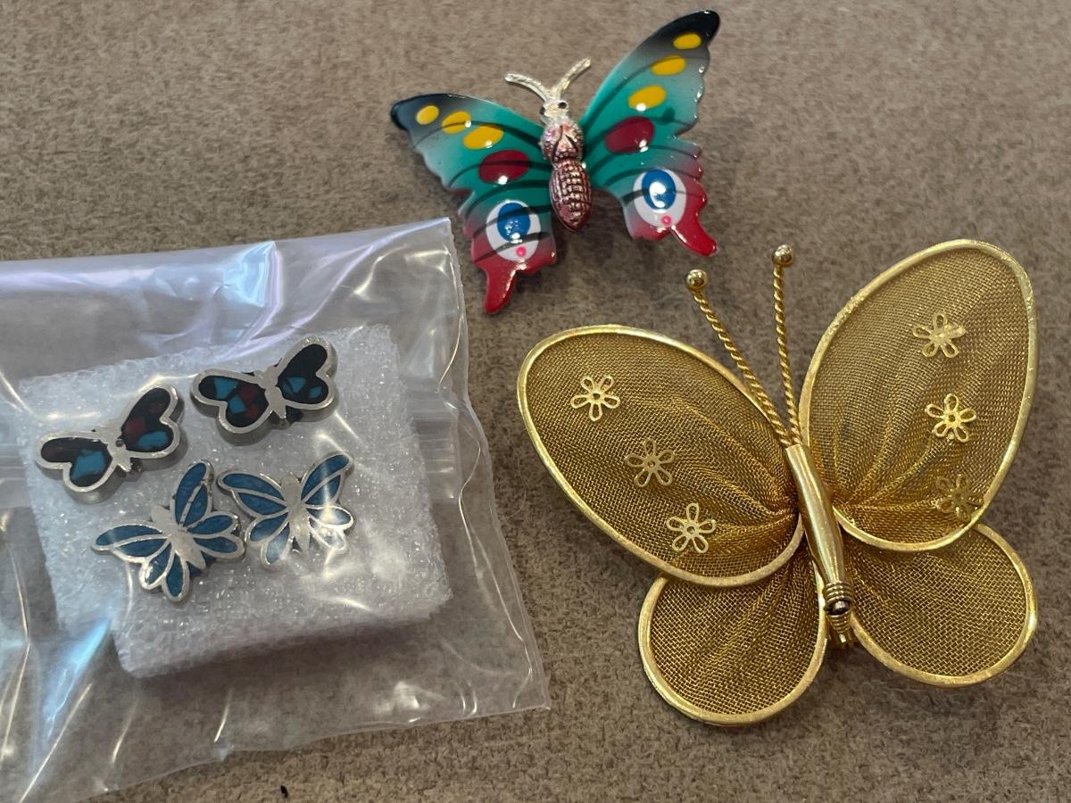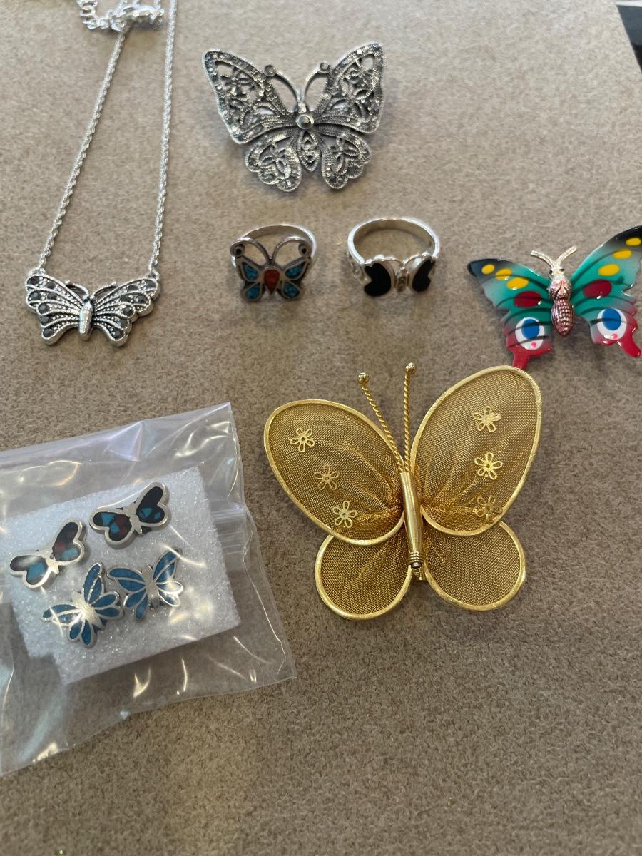 Includes Sterling ring three pins two pairs of earrings and one necklace