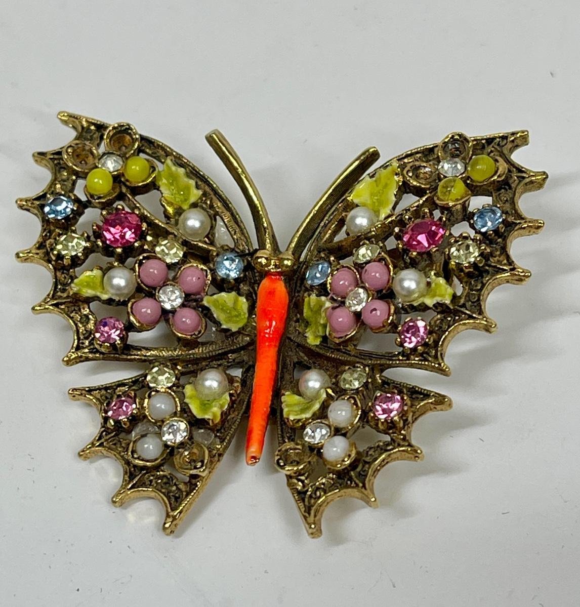 ARI Multi Colored rhinestone Butterfly Pin Brooch
