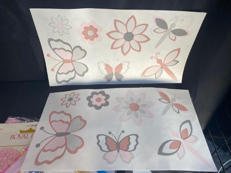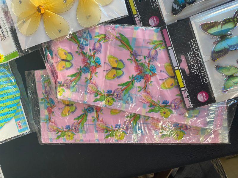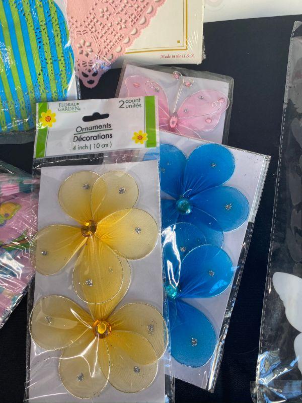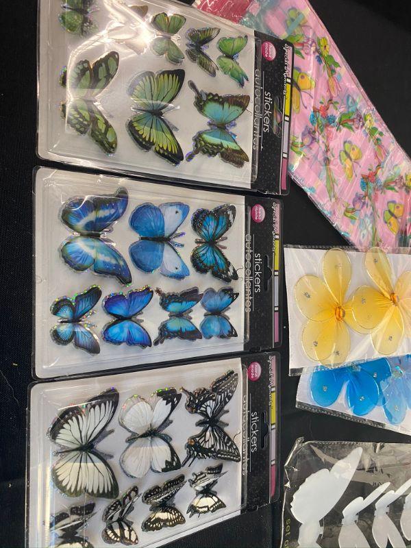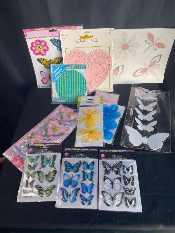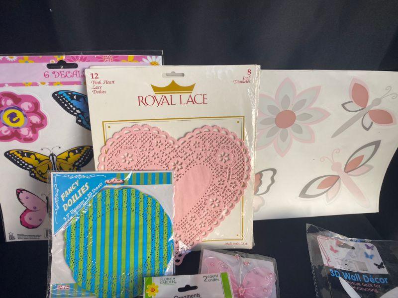 Springtime fun lot. Butterfly wall decals, colorful paper doilies, treat bags, and butterfly stickers.