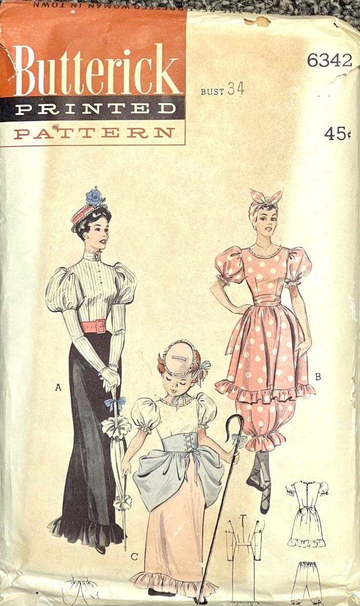 Butterick Printed Pattern No. 6342 Gay Nineties Bathing Suit and Bo-Peep bust 34