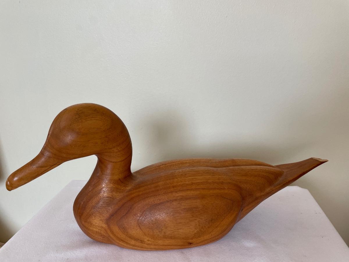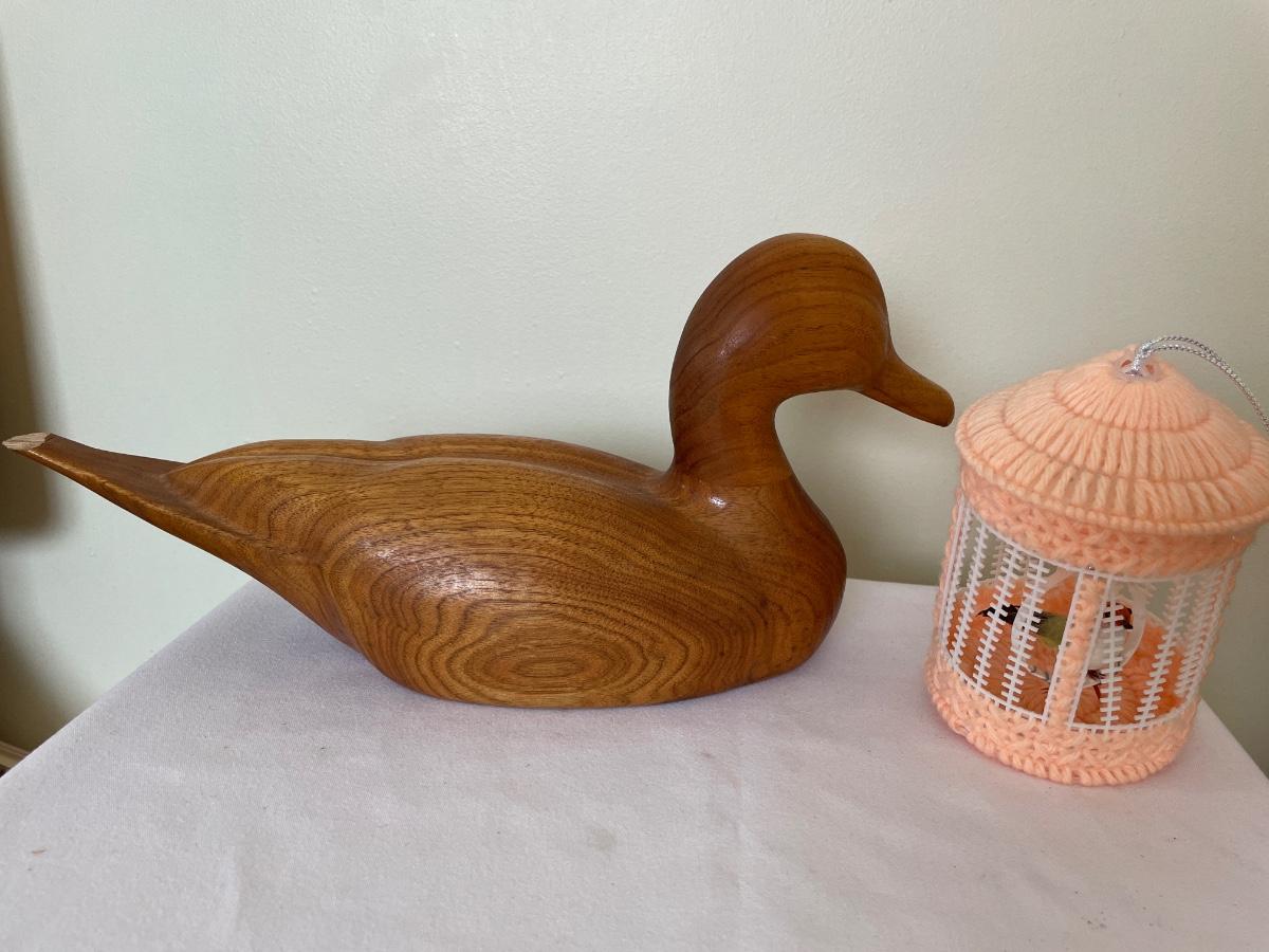 Butternut Wood duck signed by KA Nyhus & handmade birdcage