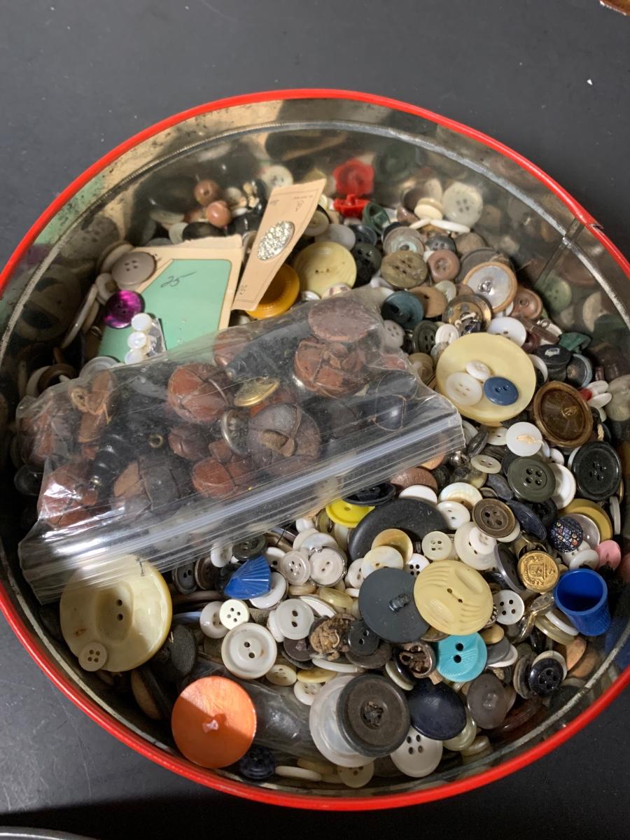 Large tin of buttons of all ages