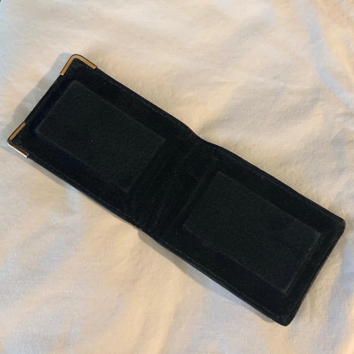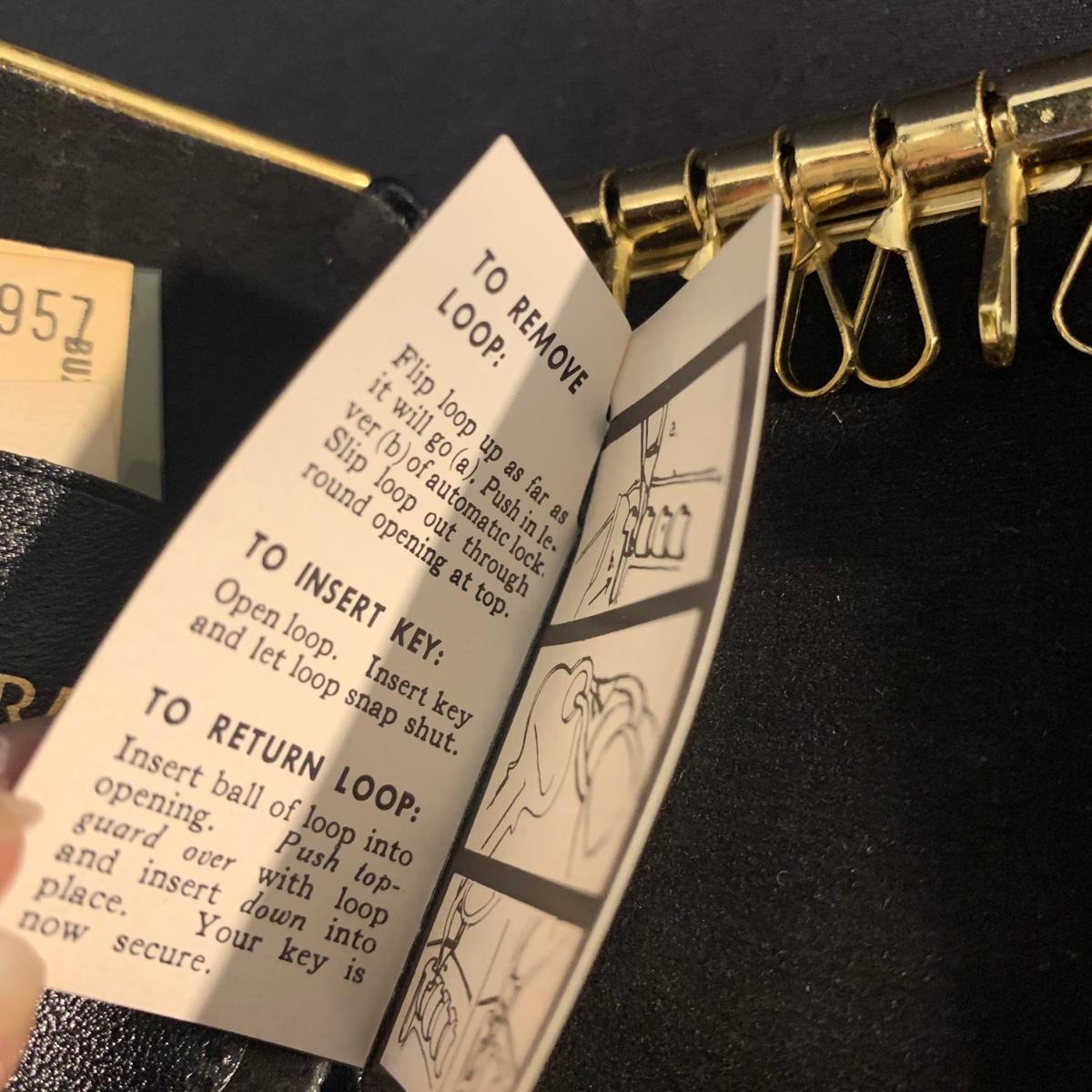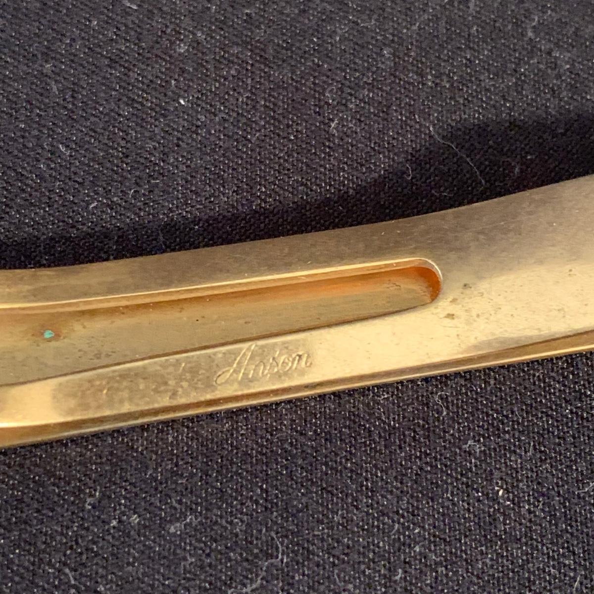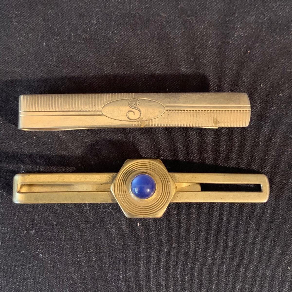 Buxton Key-Tainer in its original box, appears to be unused. Three money clips: one is magnetic with a leather-feeling outside and suede-feeling inside that measures 3.5” x 2.75” when closed, and the other two are gold-colored metal. One of these is marked Anson and monogrammed with an “S”. Shipping available.