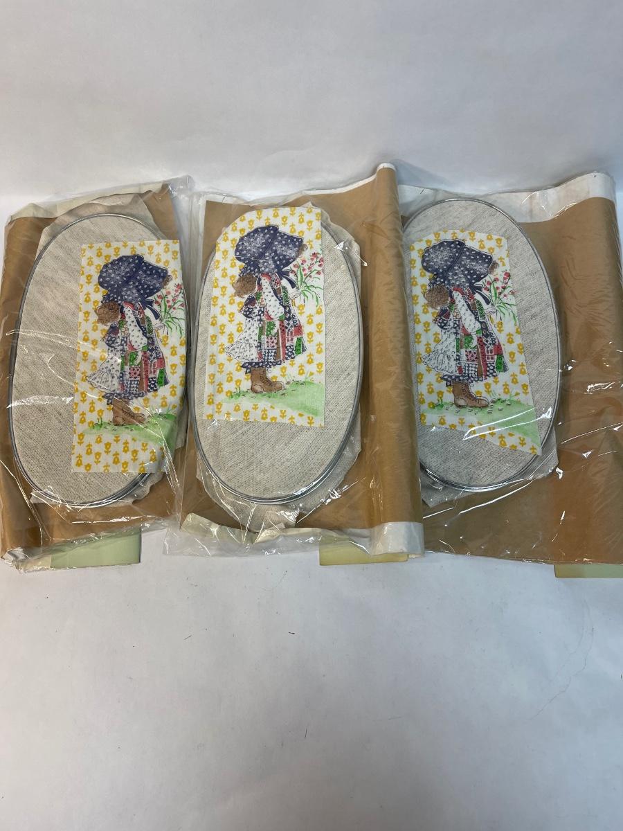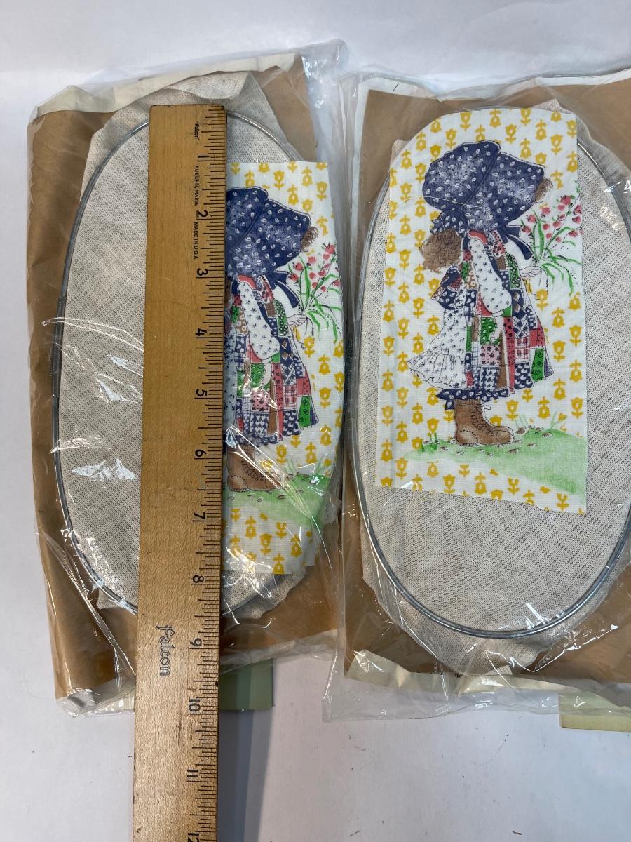 Homemade Stitchery Kits LOT#5 embroidery hoop (OVAL), material, thread, pattern Girl in Bonnet