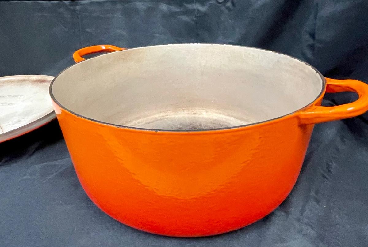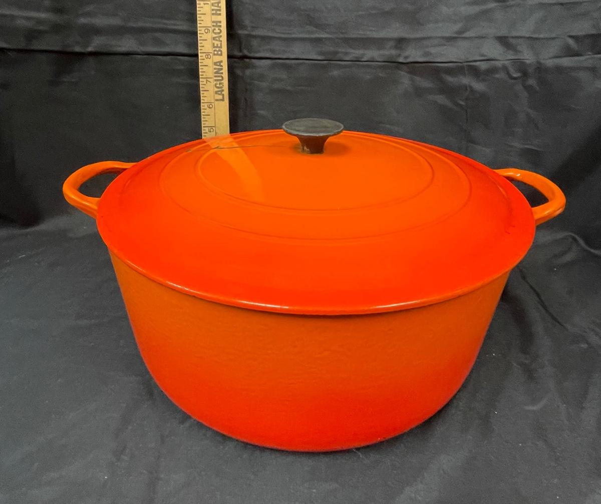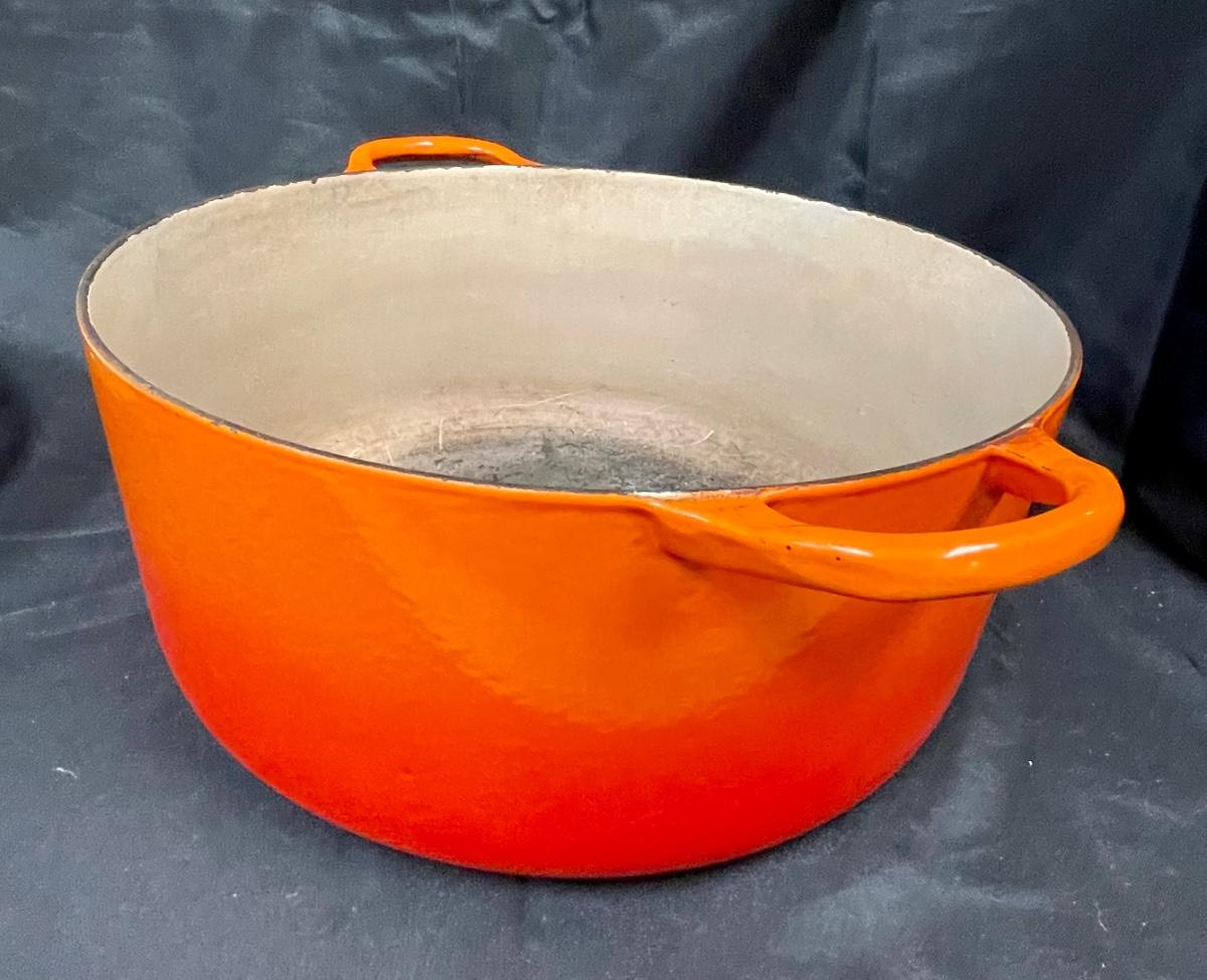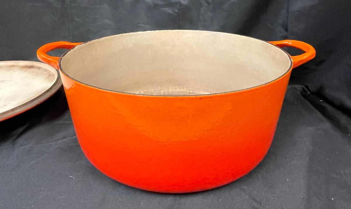 Vintage Flame Orange La Creuset Large Dutch Oven Lidded Double Handle Pot