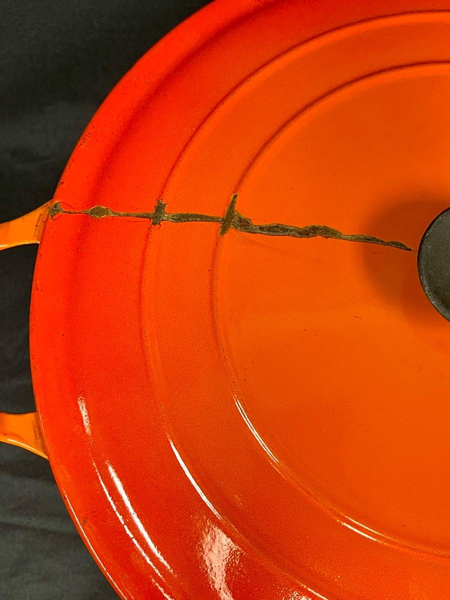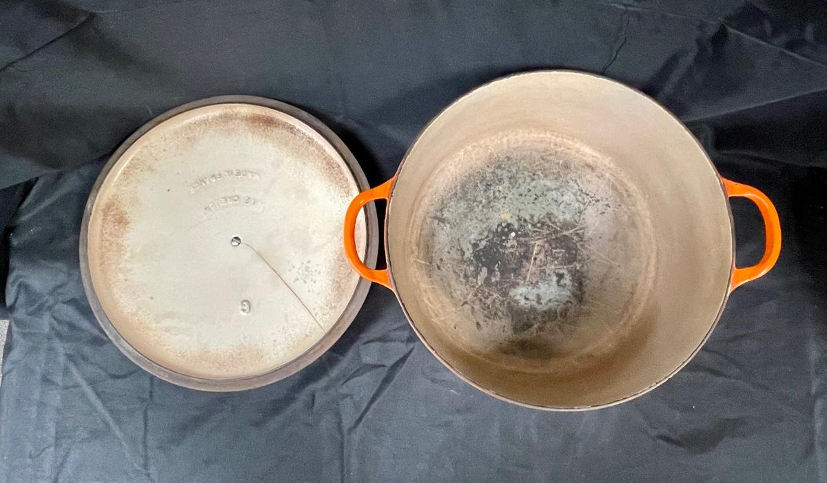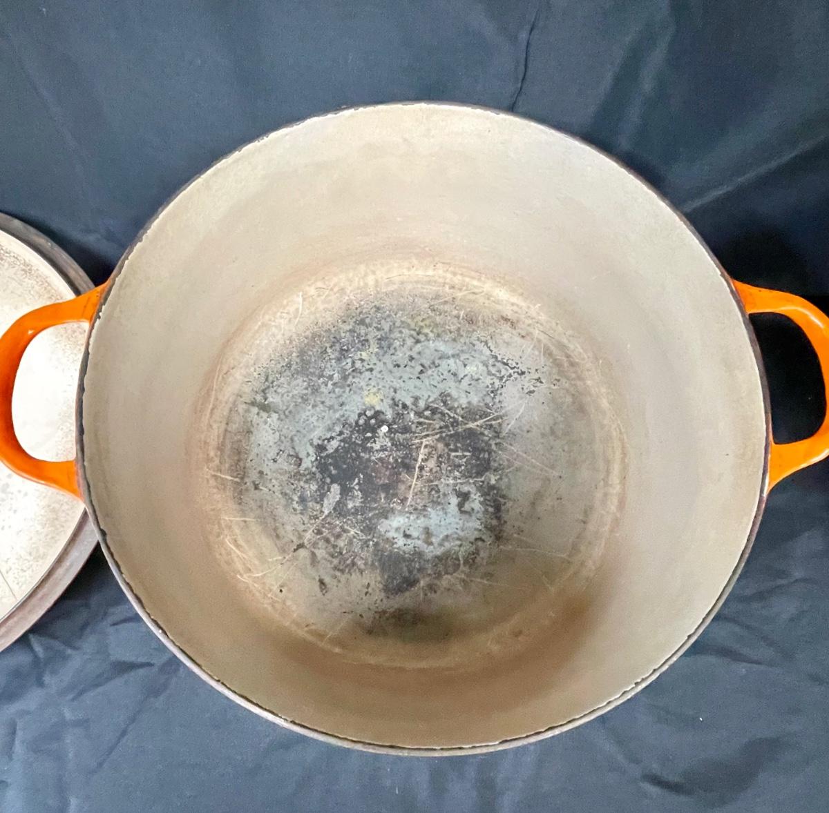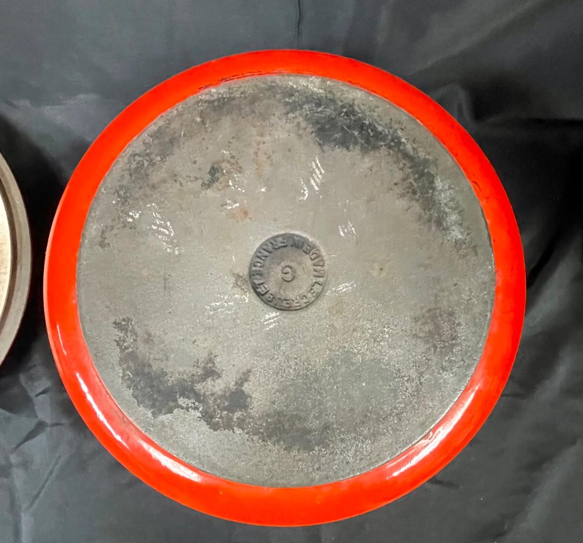 Vintage Flame Orange La Creuset Large Dutch Oven Lidded Double Handle Pot