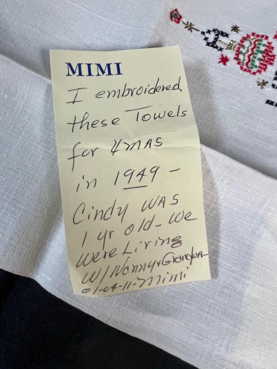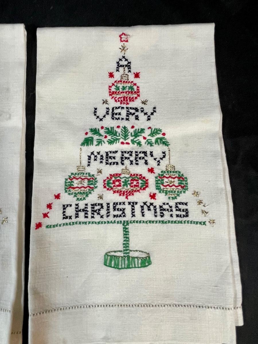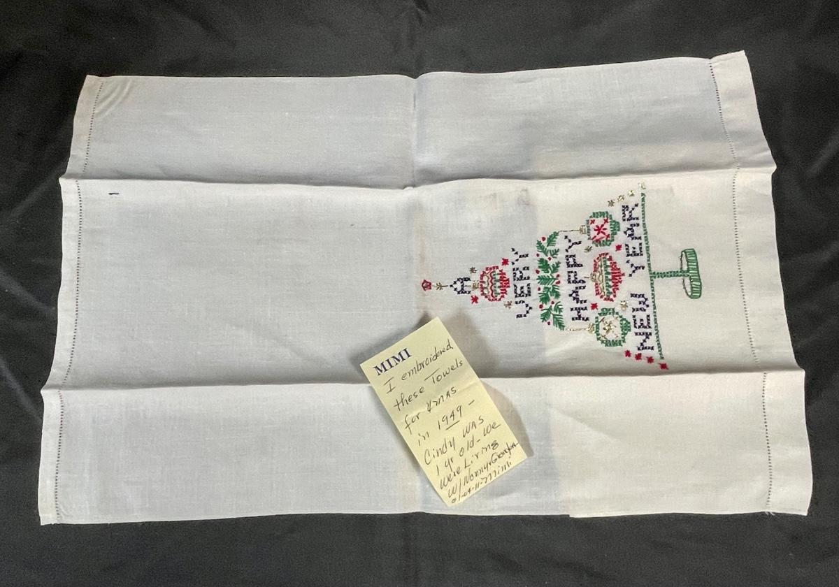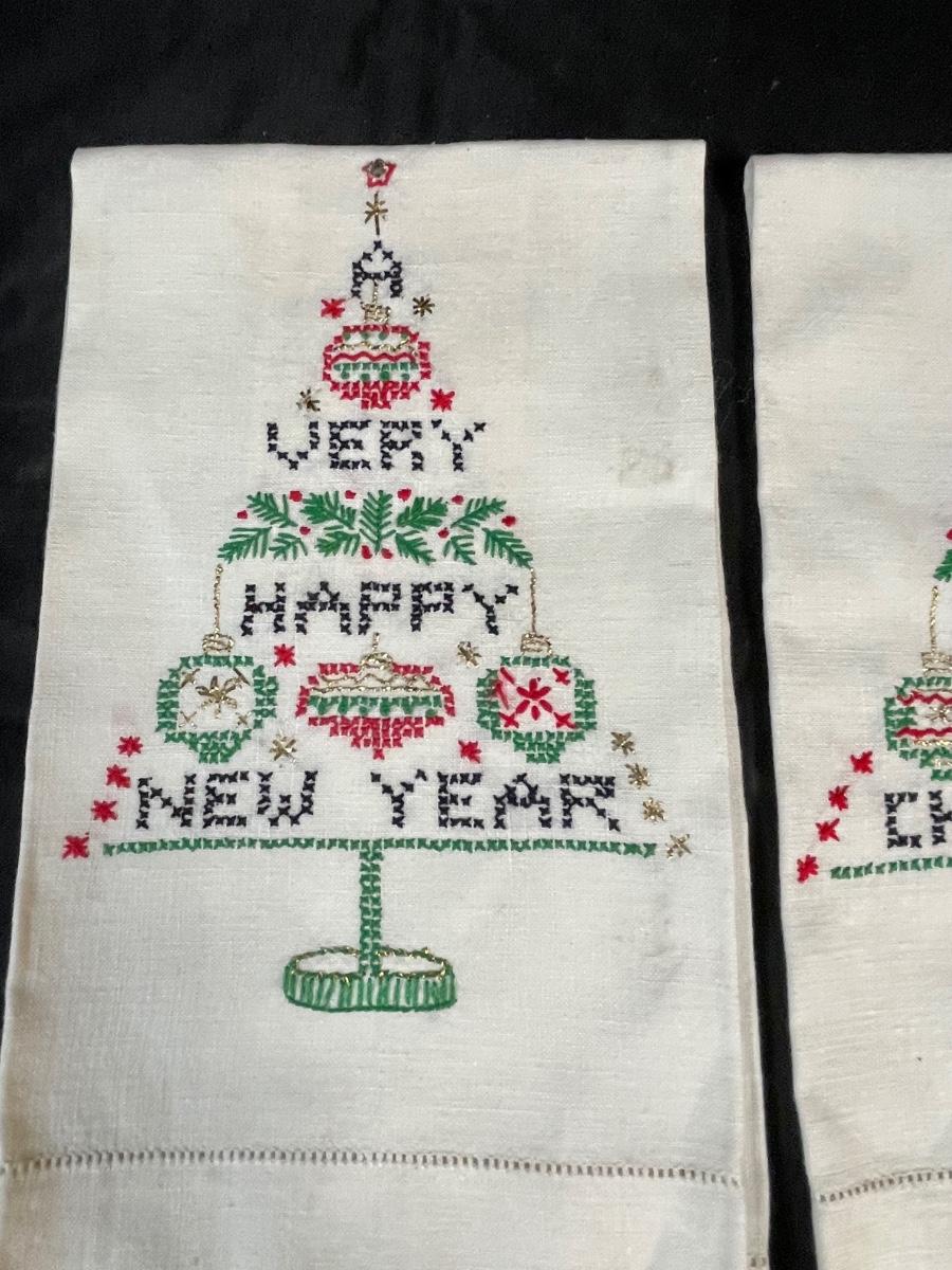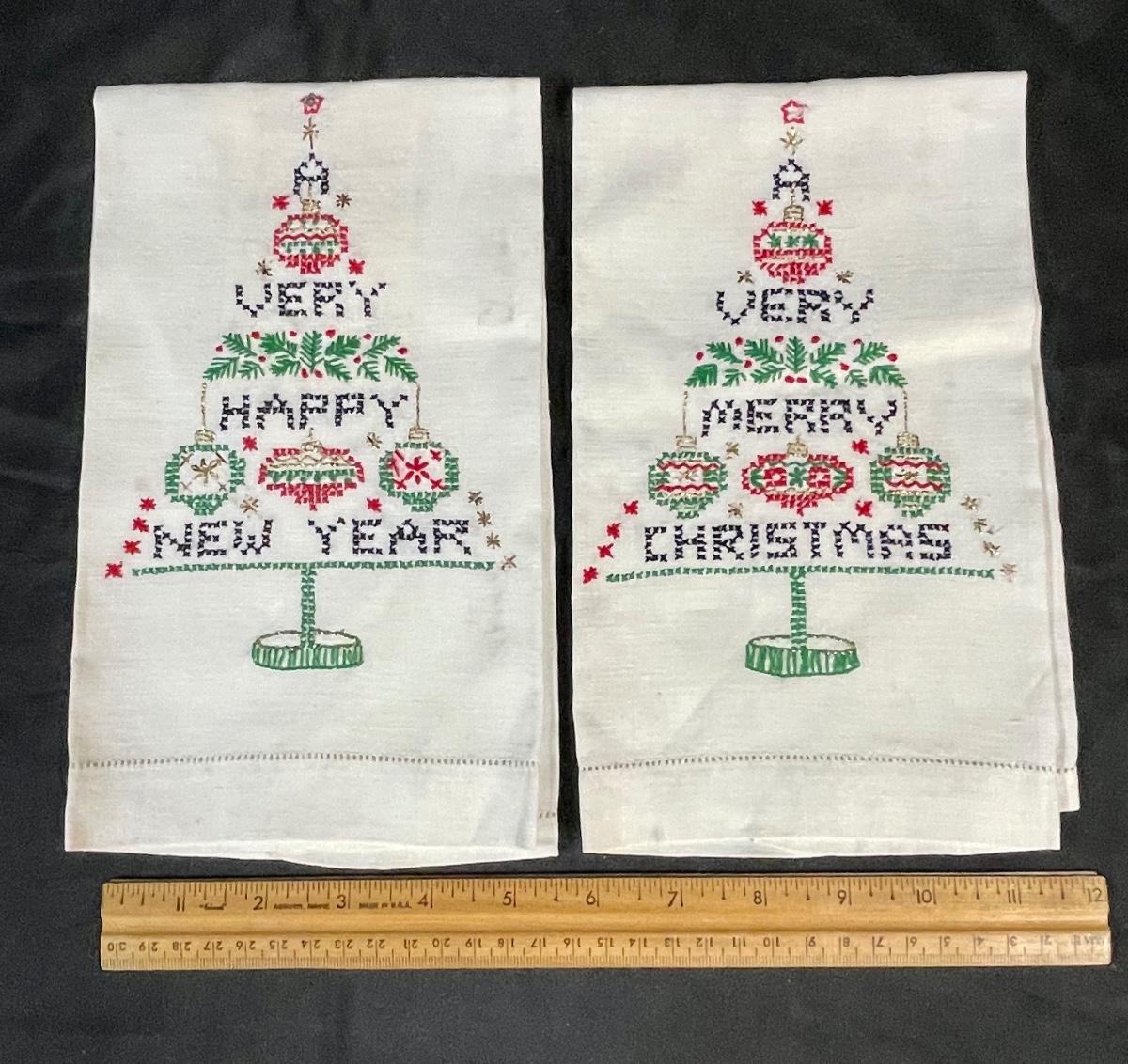 Vintage Hand Embroidered Christmas and New Years Tea Towels with Note
