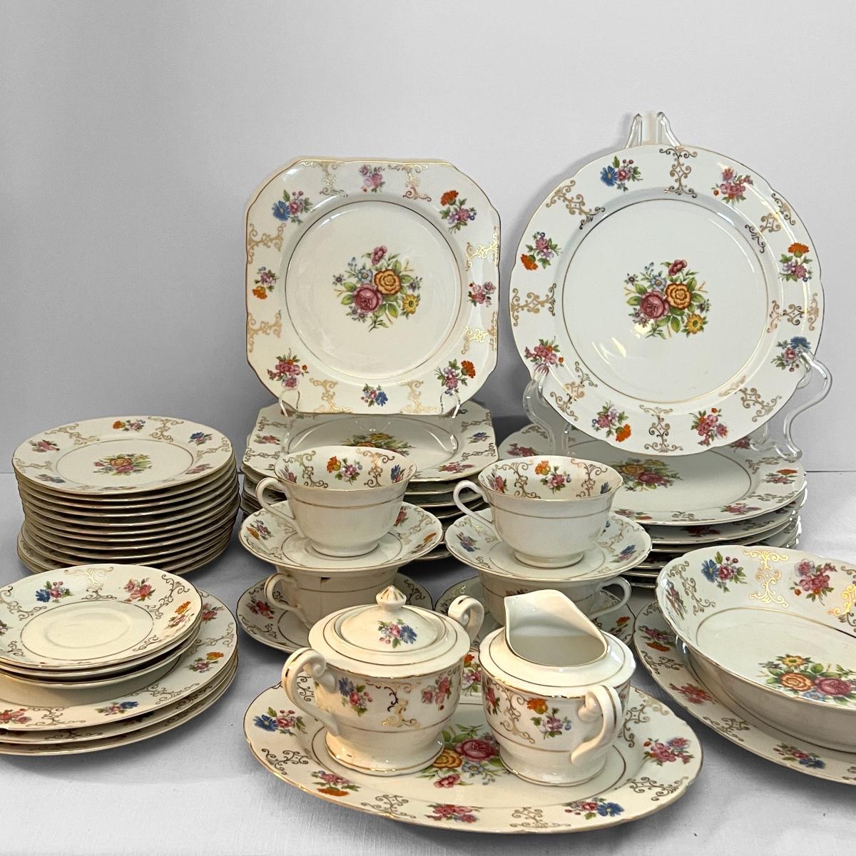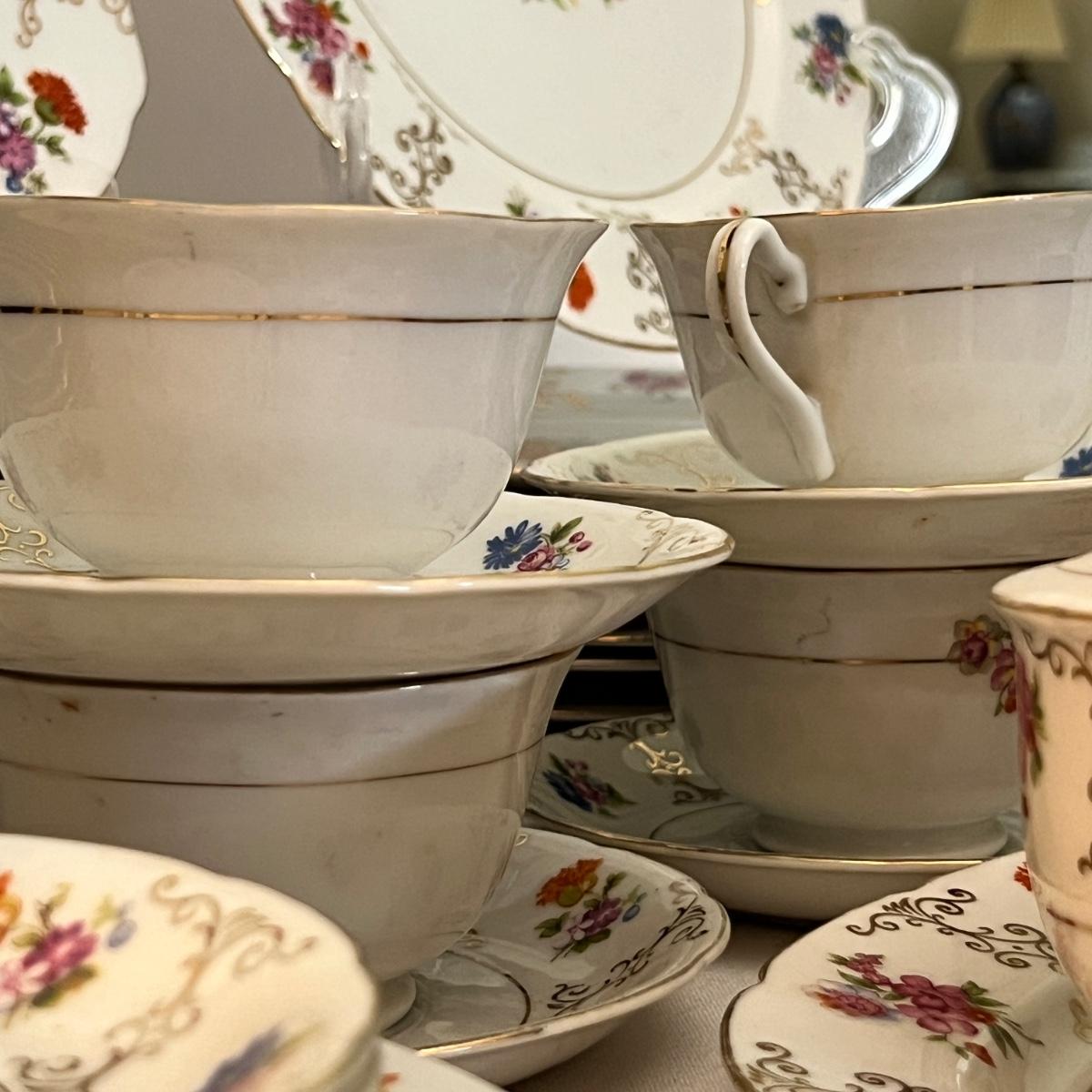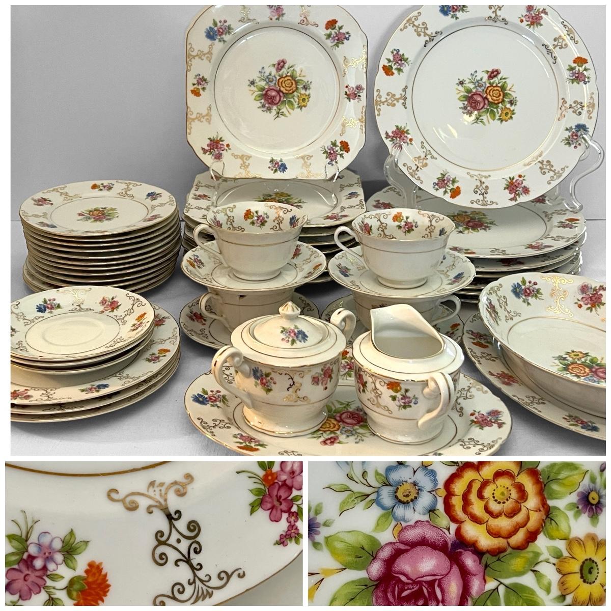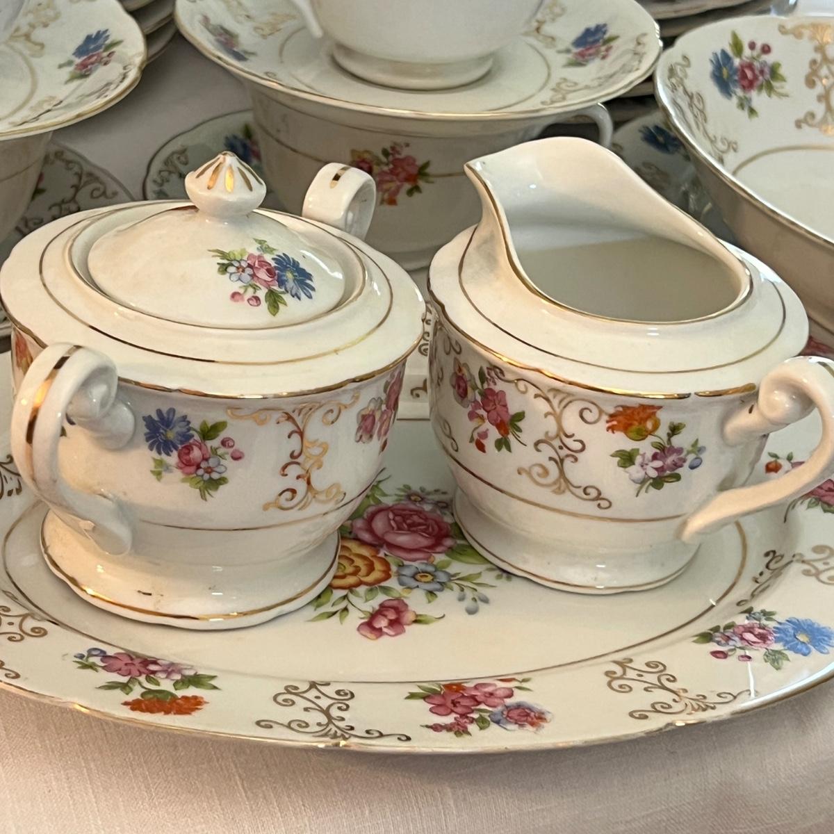 Total number of pieces coming soon. Chip in tea cup as shown in pic. Otherwise in great condition.