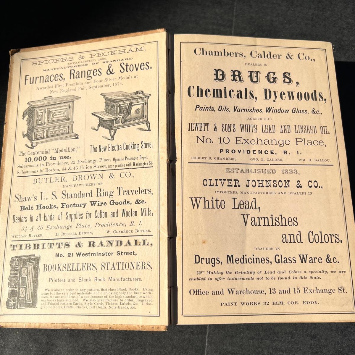 Antique directory of citizens and businesses of Providence Rhode Island in 1876. Very interesting piece! See all pics for details and condition.