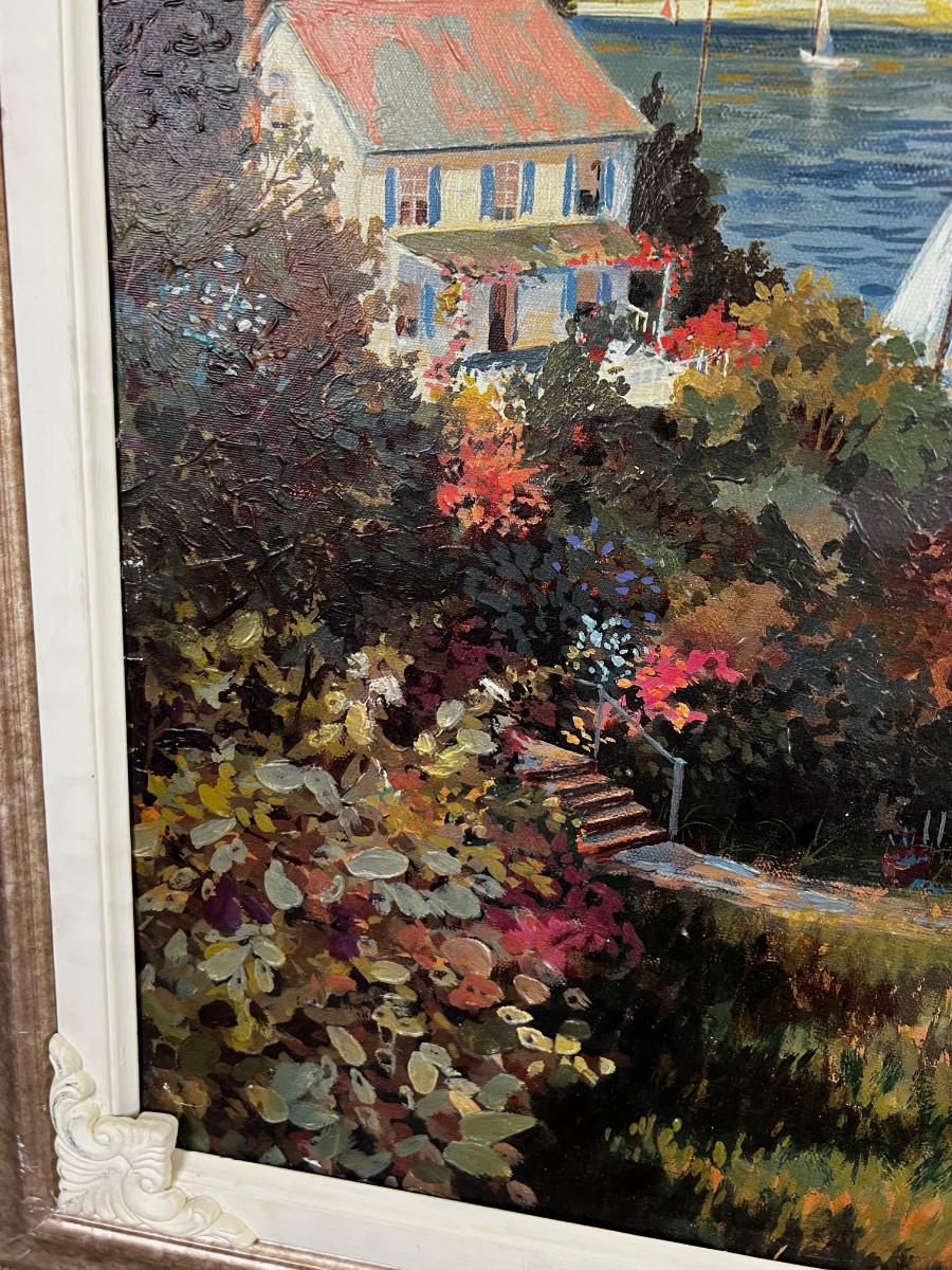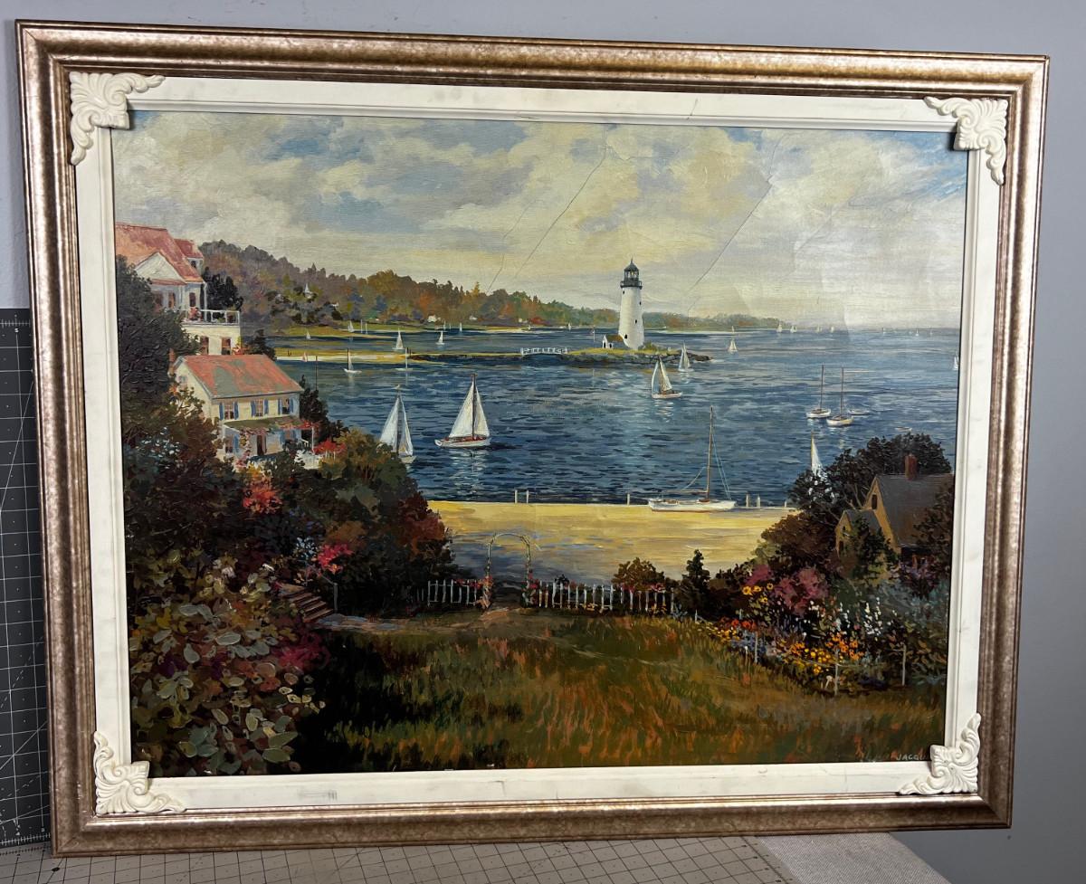 By Jacque. Large Sea Side Light House Oil on Canvas