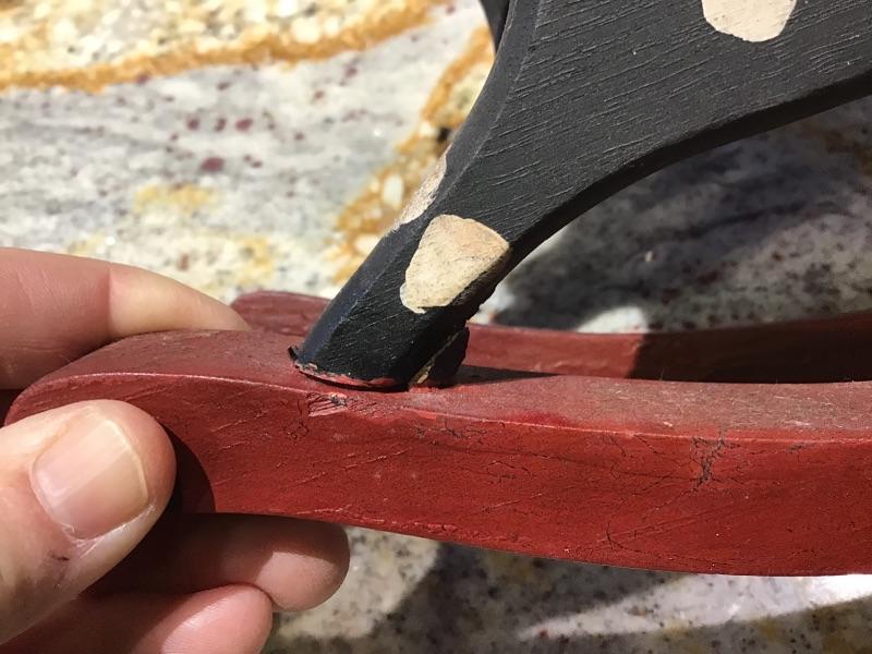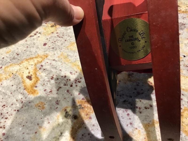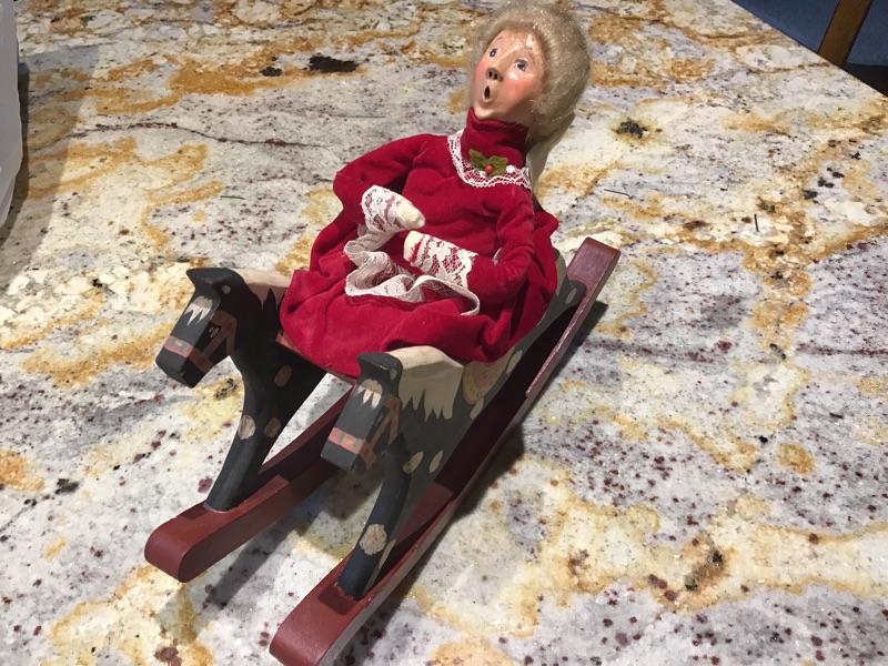BYERS THE CAROLERS HORSE SLEIGH. BOTTOM OF LEG OF HORSE SLIGHTLY CRACKED. SEE PICS. VERY TOUGH TO SEE.