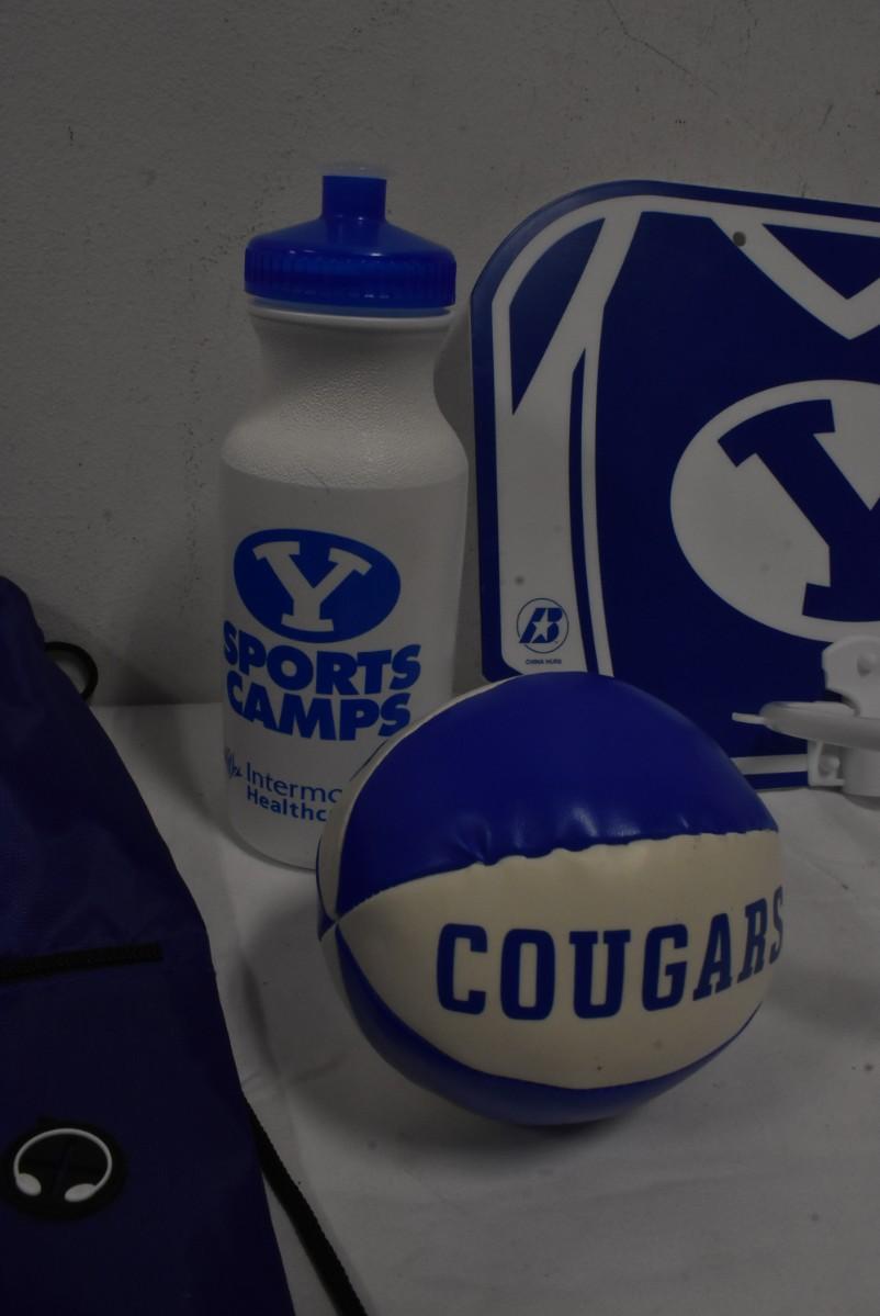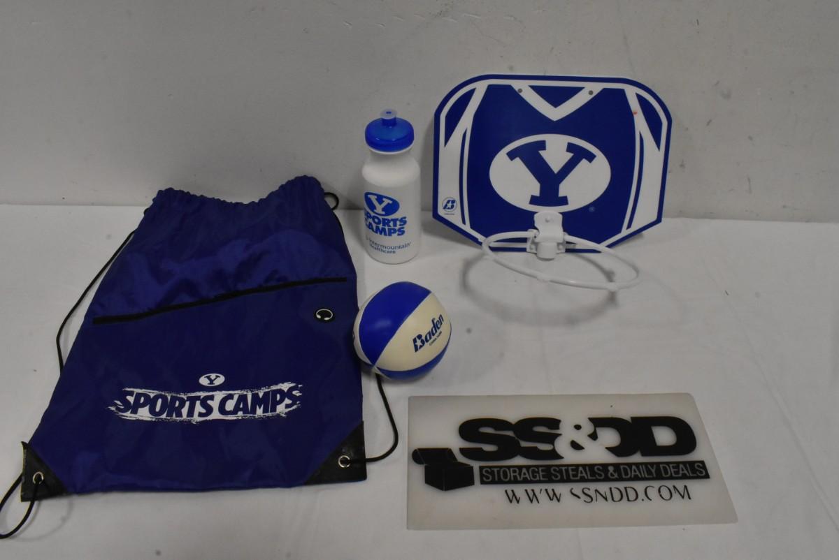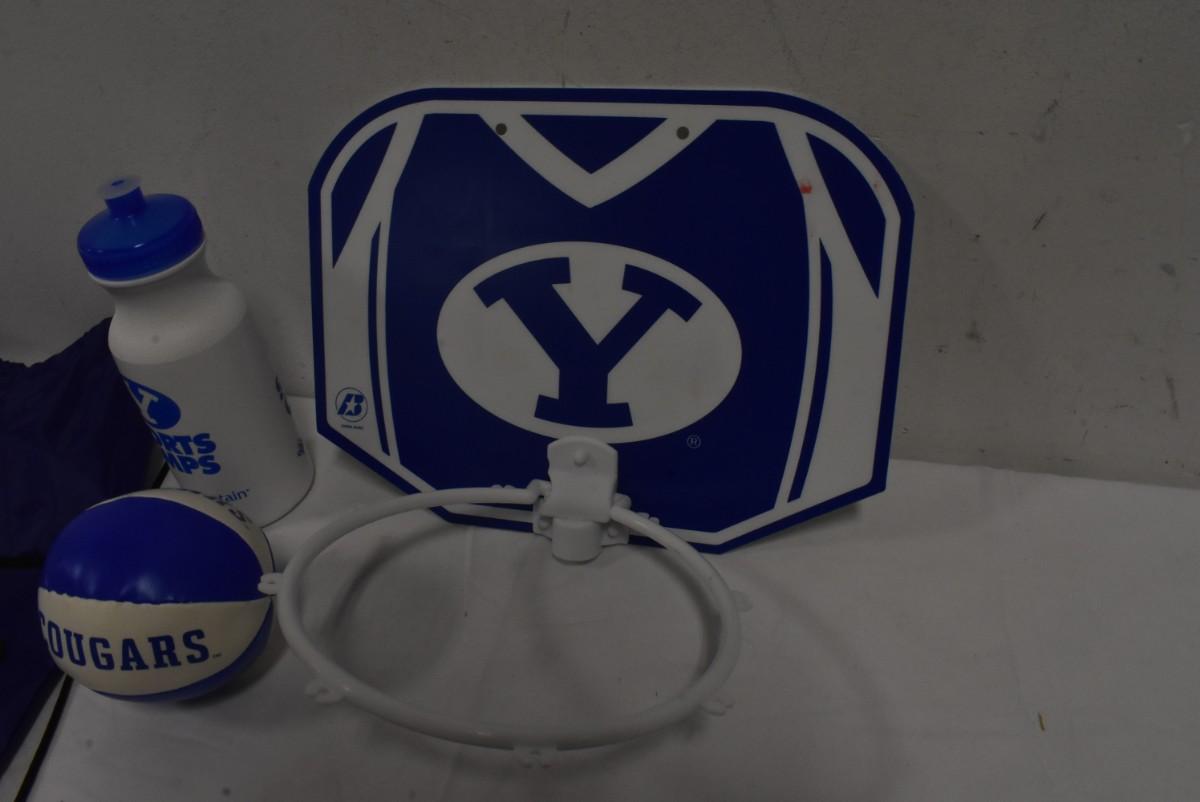 BYU Merch: Small Basketball Hoop, Small Ball, Waterbottle, Drawstring Bag