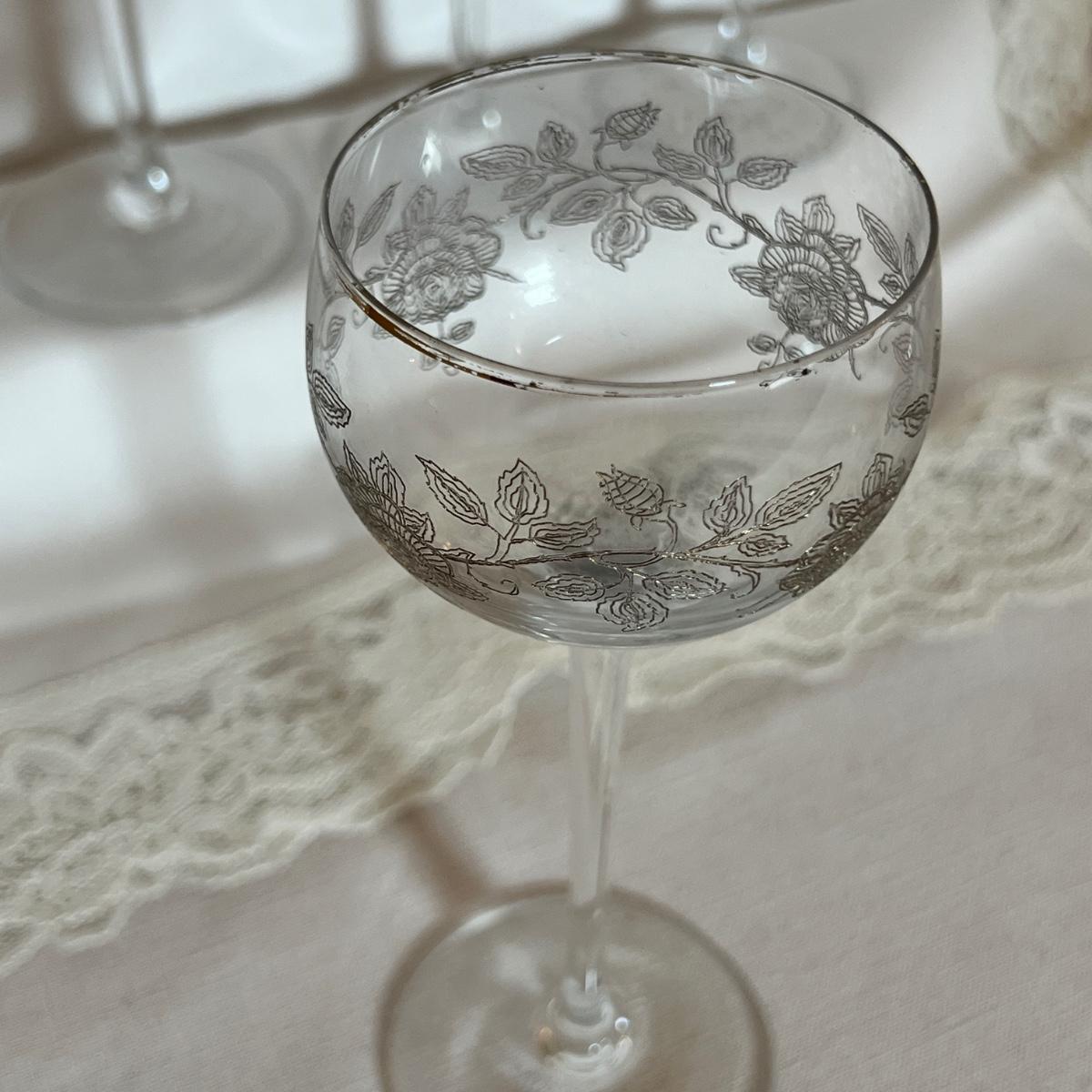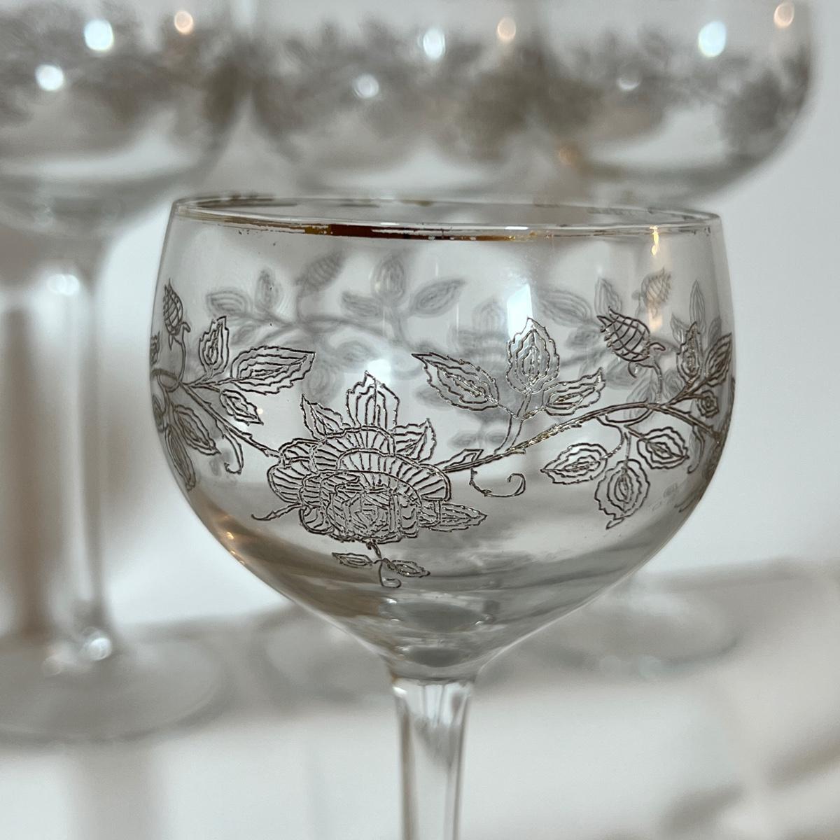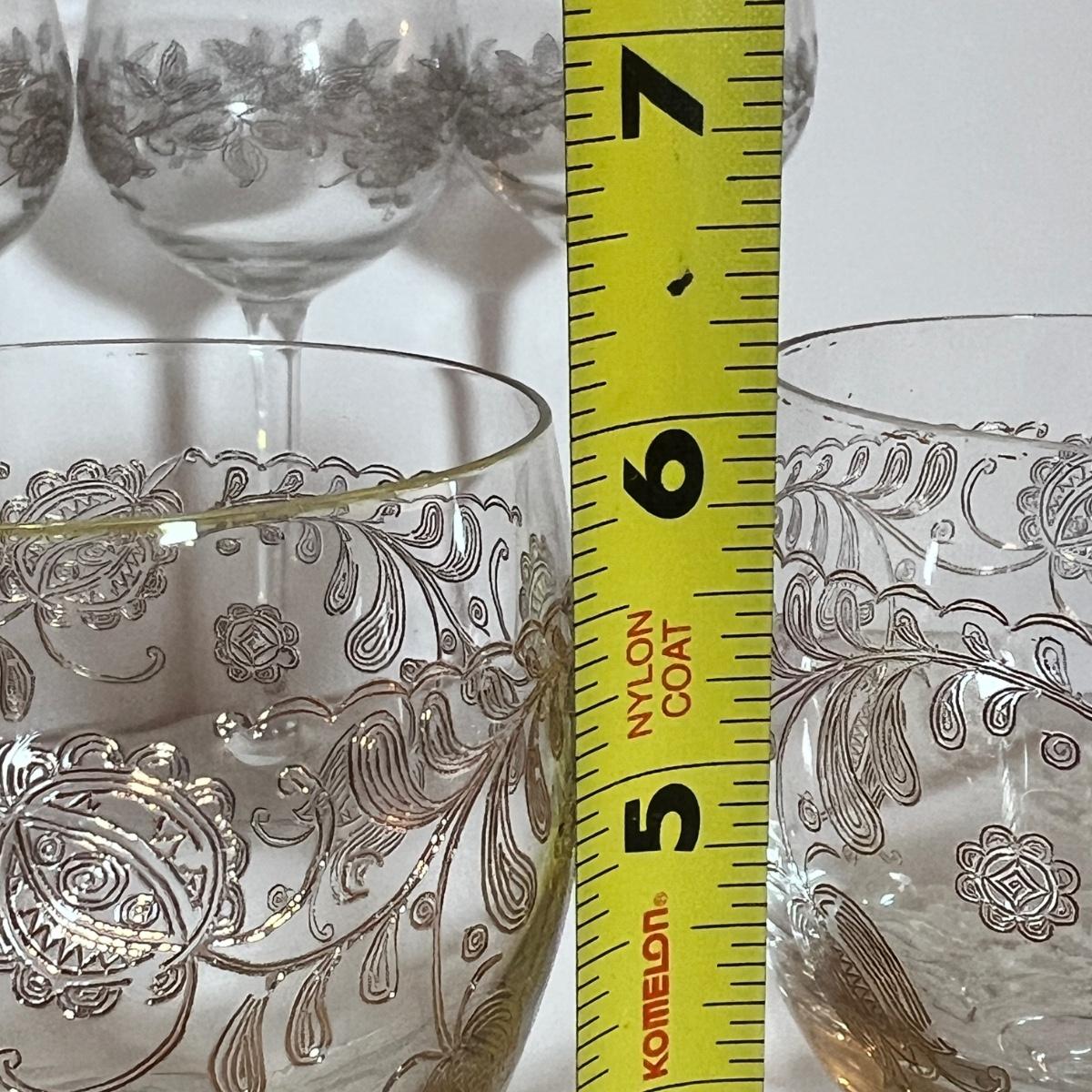 Lot of 6 Vintage Metal Overlay Champagne Wine Stemware