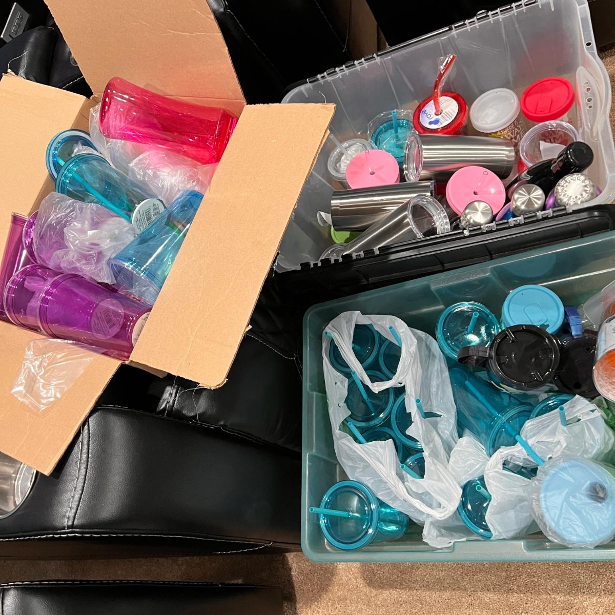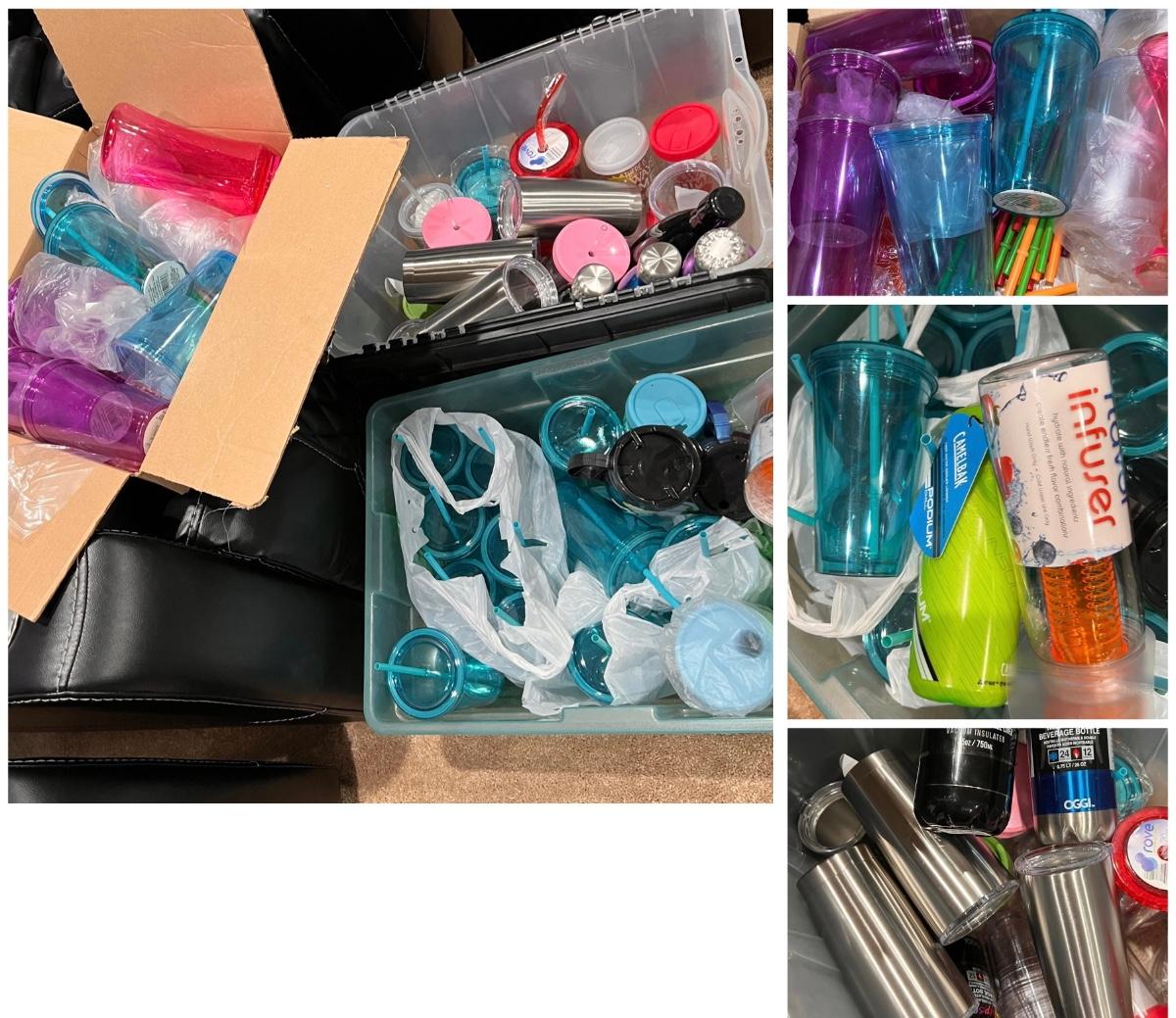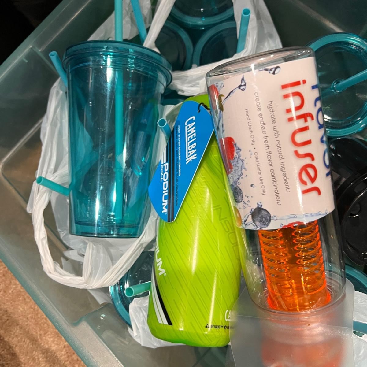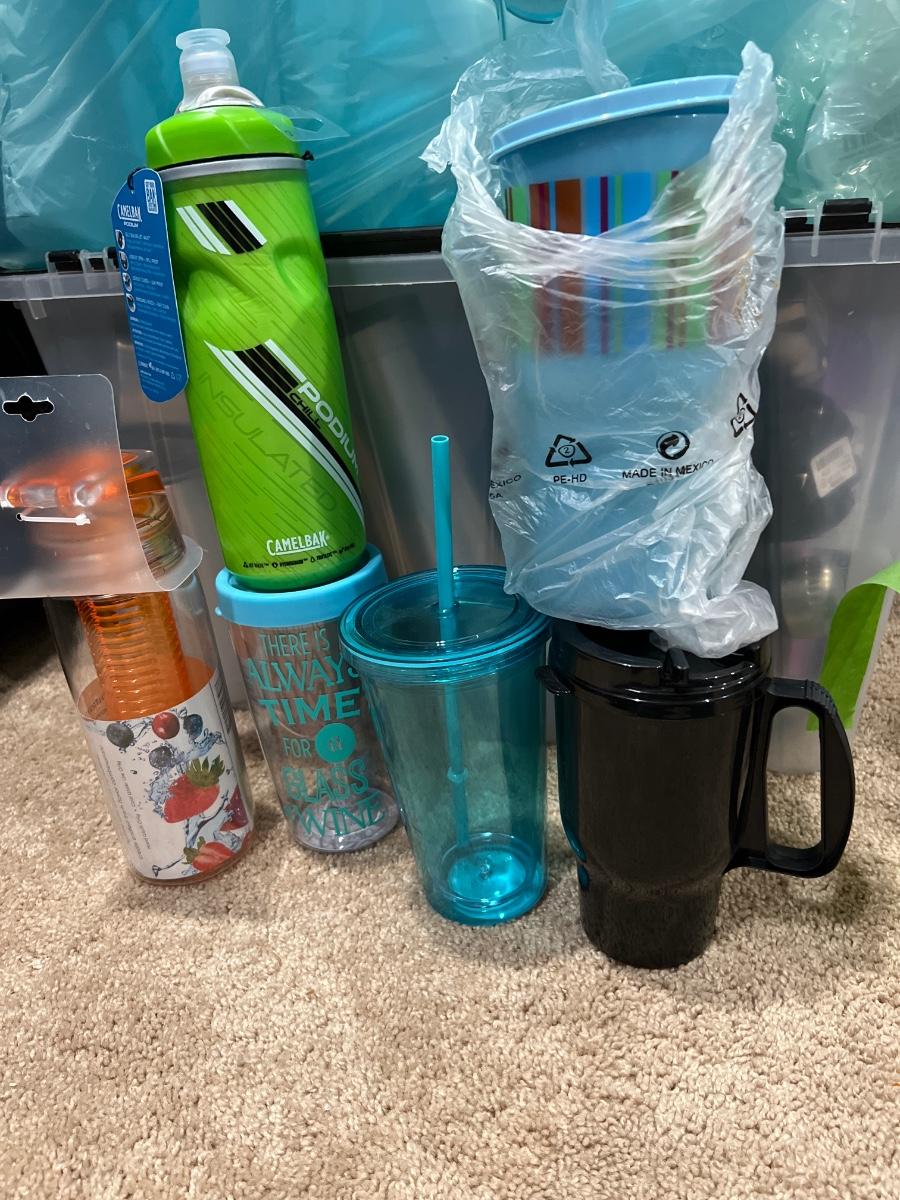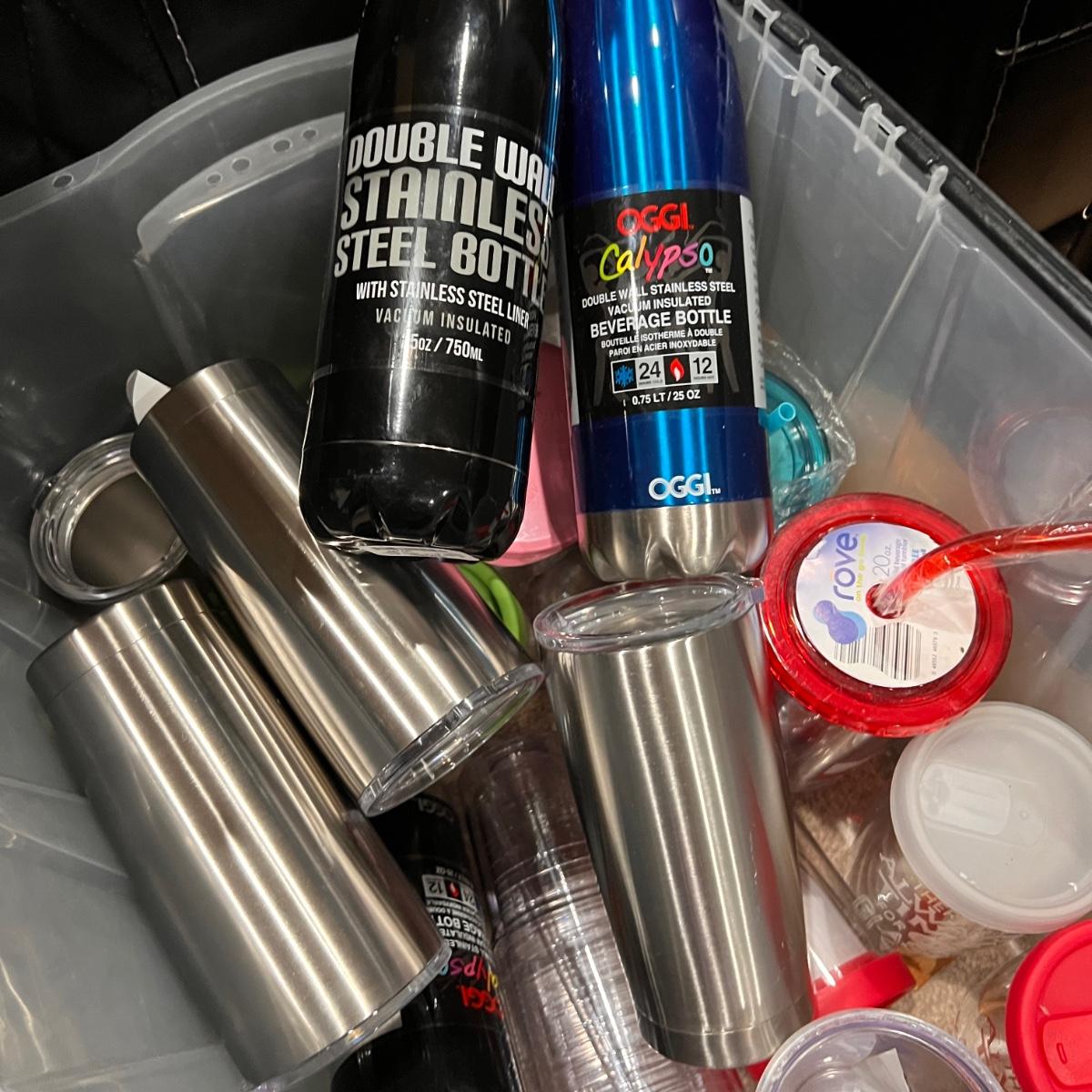 All new, various sizes. Tumblers, water bottles, portable mugs, etc.