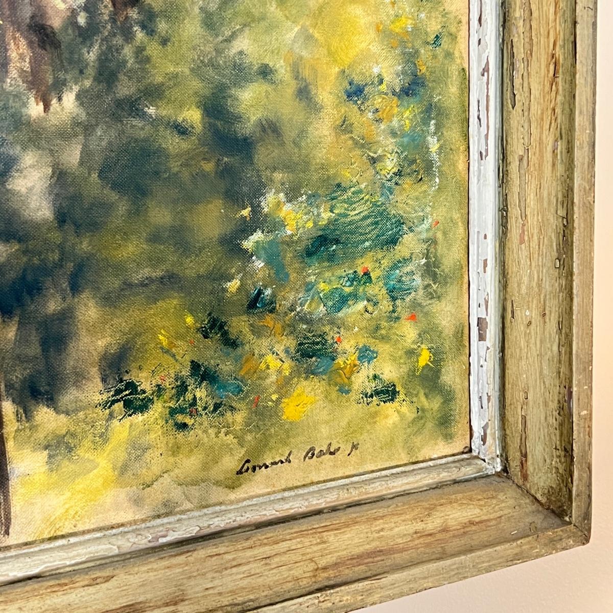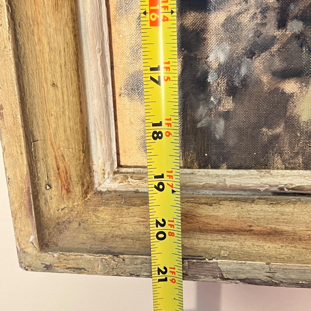 Signed oil on board. The distressed frame really adds to the artwork!