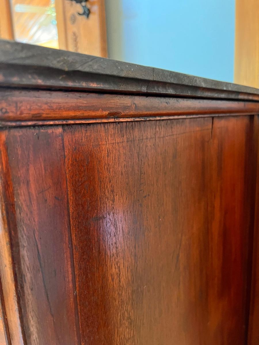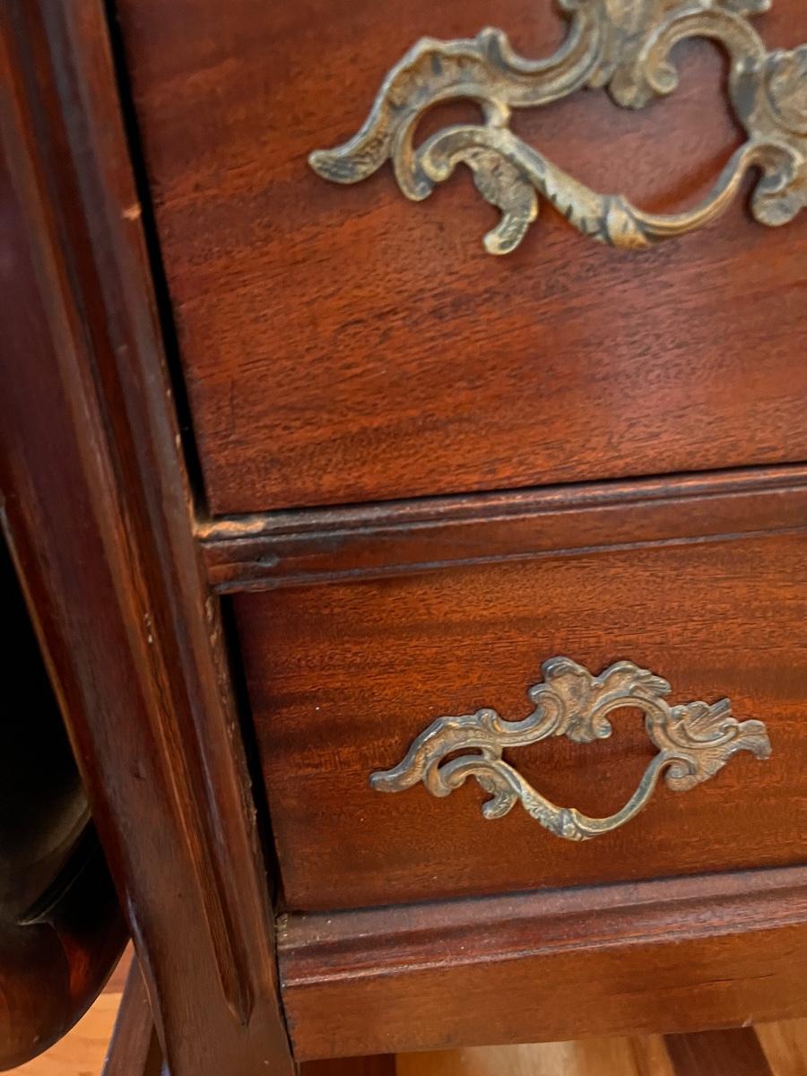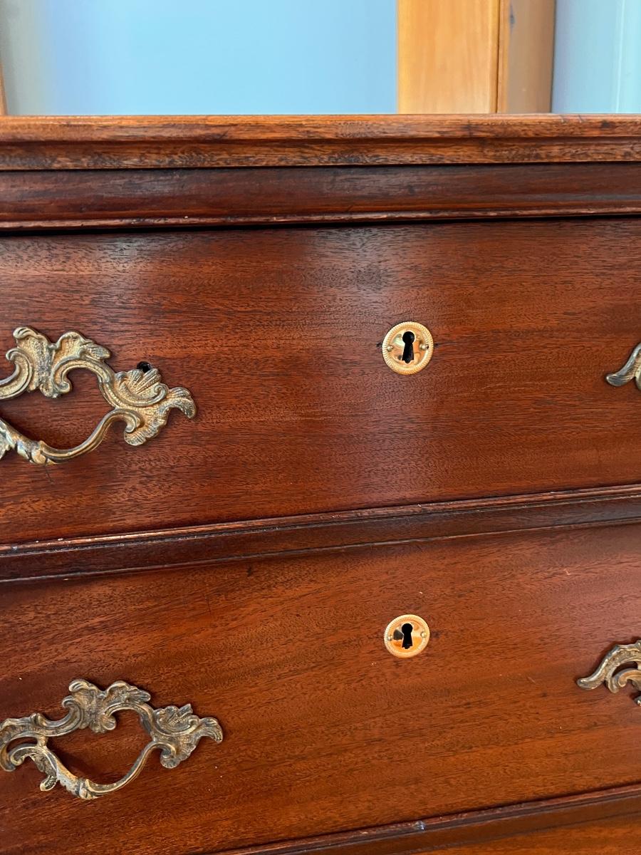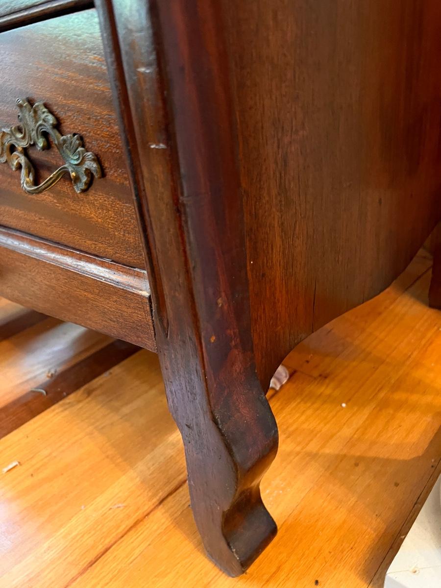 Antique dresser with swivel mirror (already detached - comes with screws). In good antique condition, shows some wear as shown in pics. Keyhole hardware looks newer, not original. The rest of the hardware looks original.