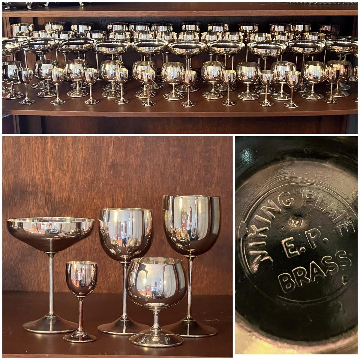 61 Piece Set Viking Plate EP Brass Stemware Barware Glasses Goblets