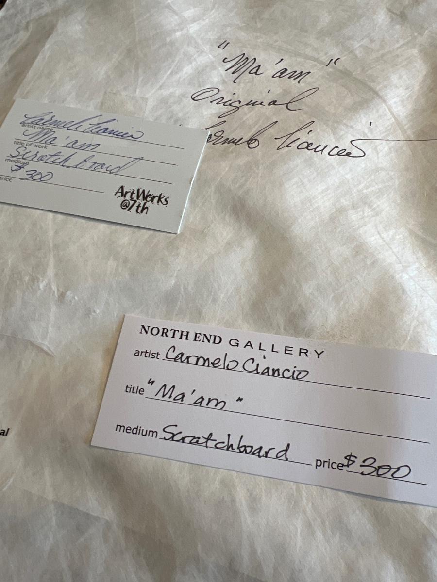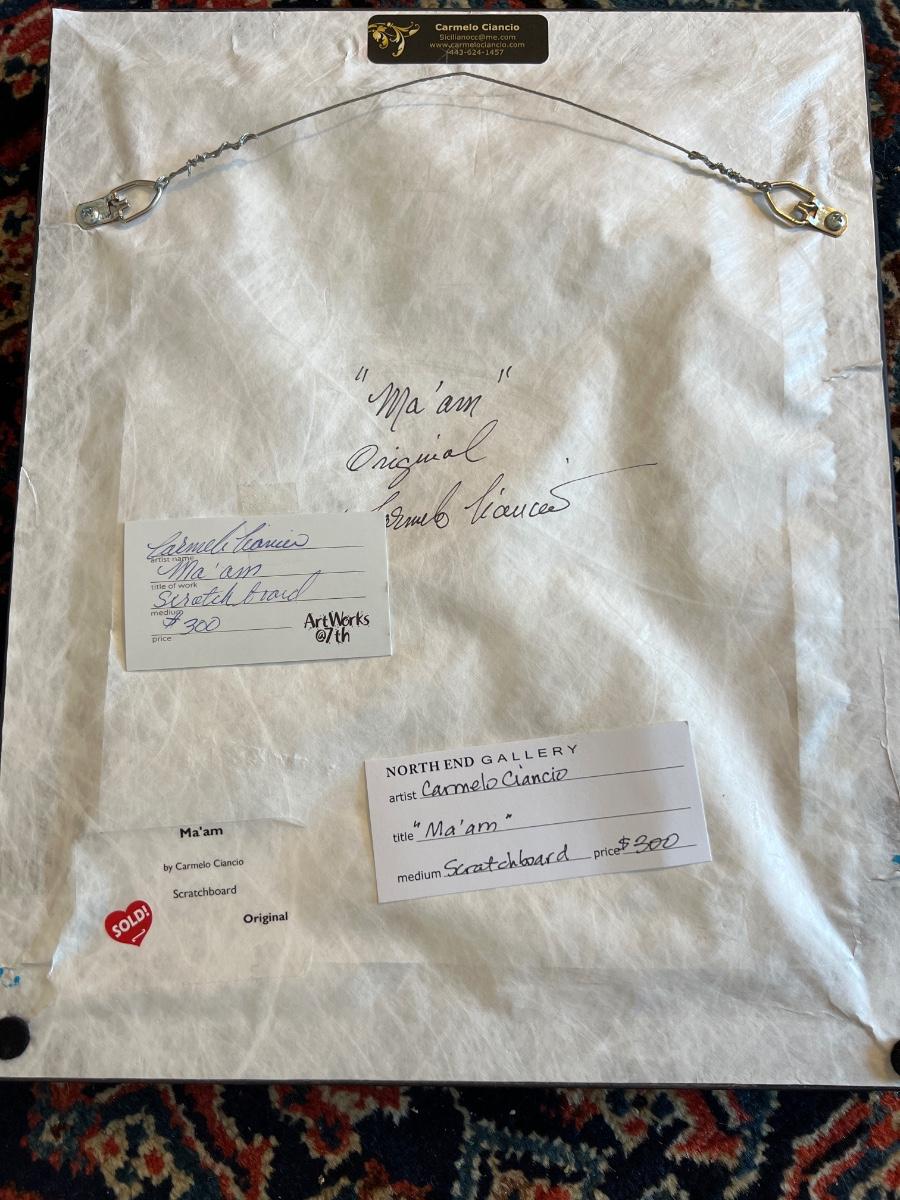 Original Framed Carmelo Ciancio Scratchboard Art - Signed