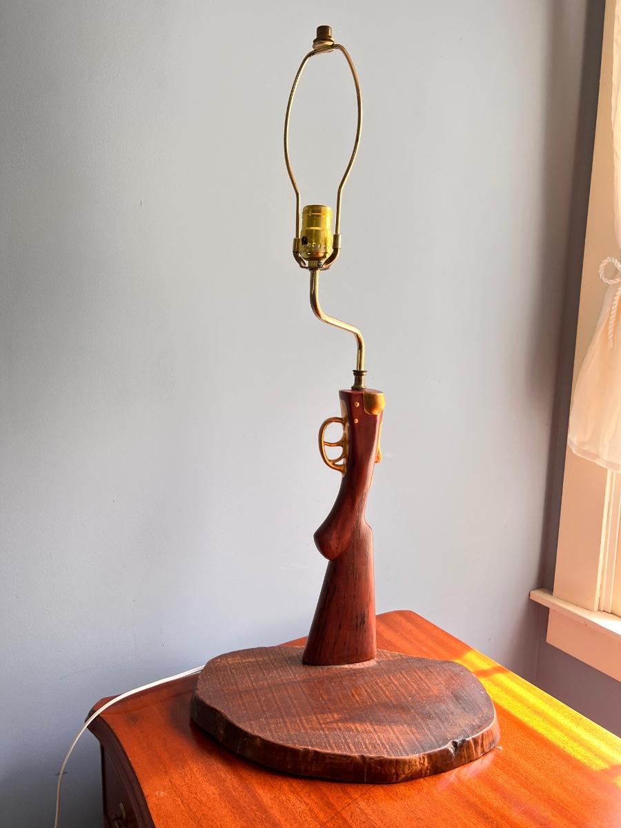 Vintage Shotgun Rifle Tabletop Lamp - Works