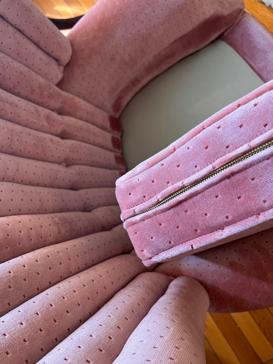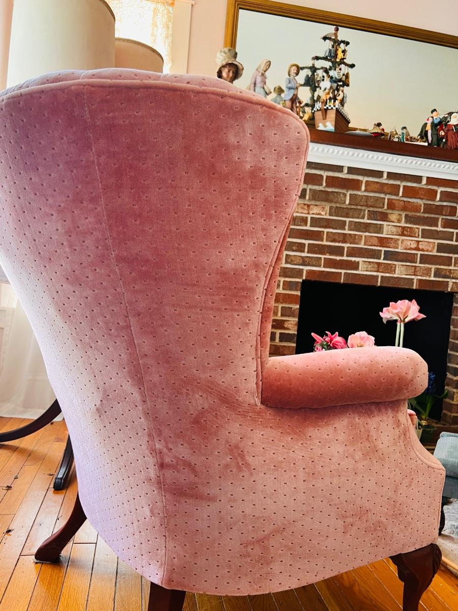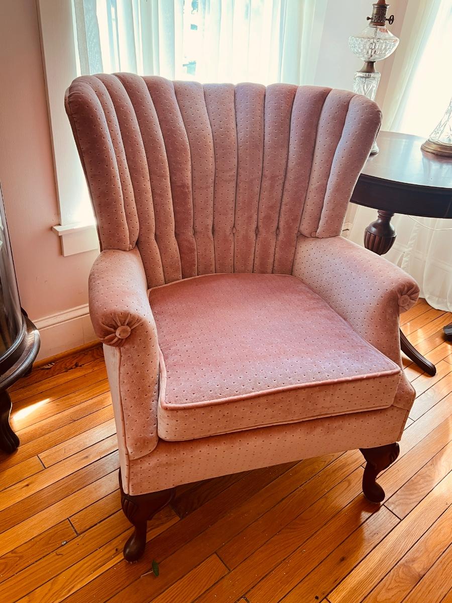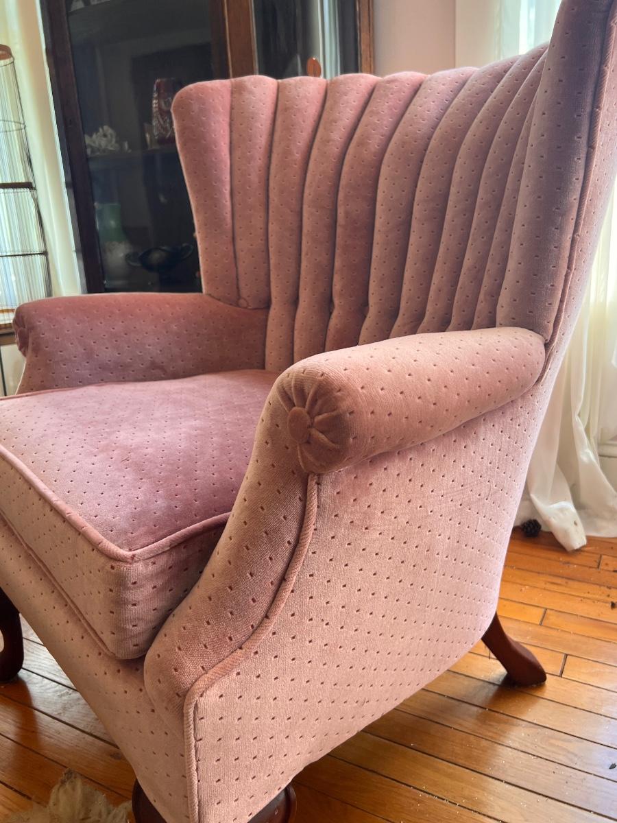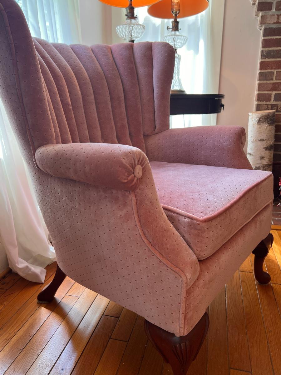 Vintage Pink Velvet Channel Back Chair