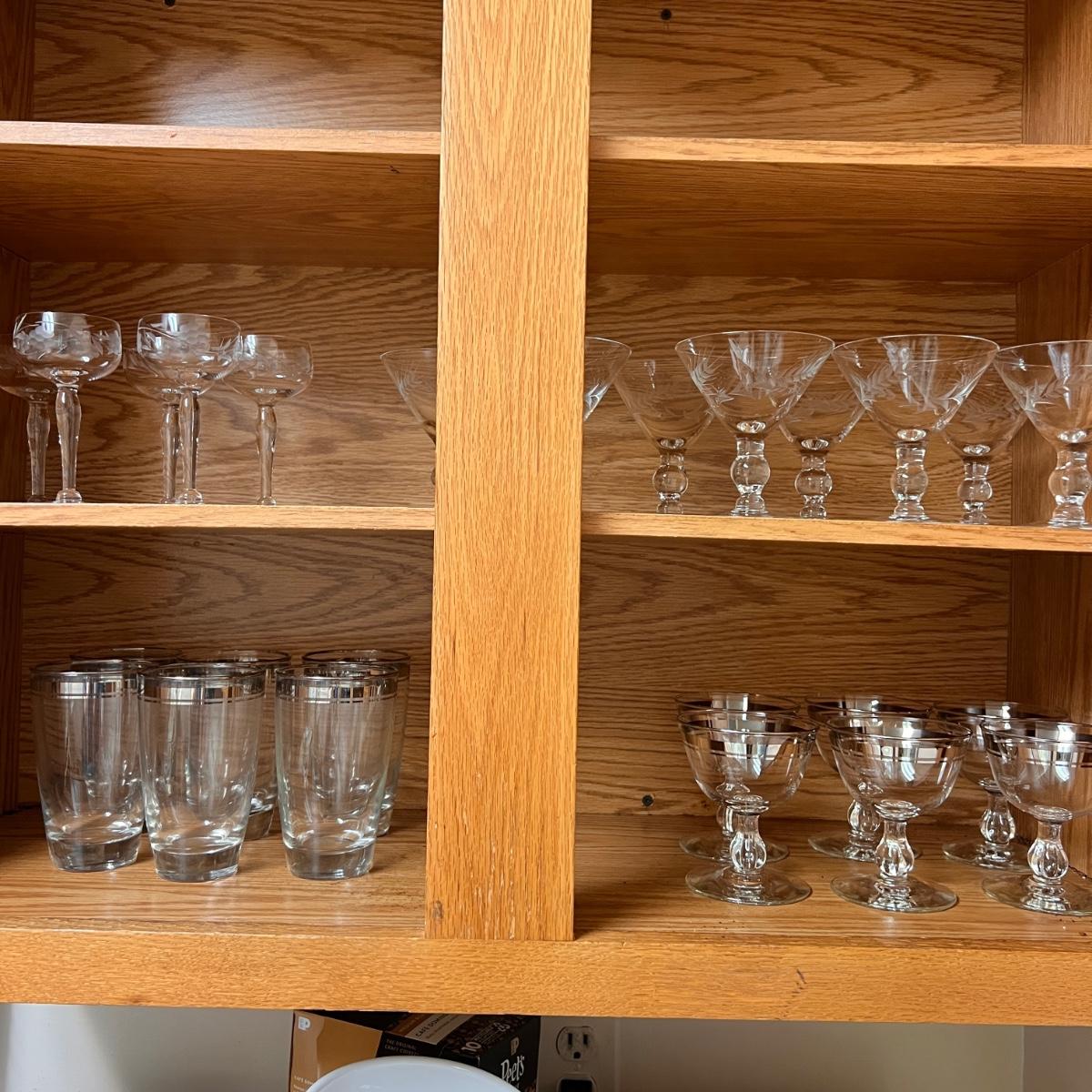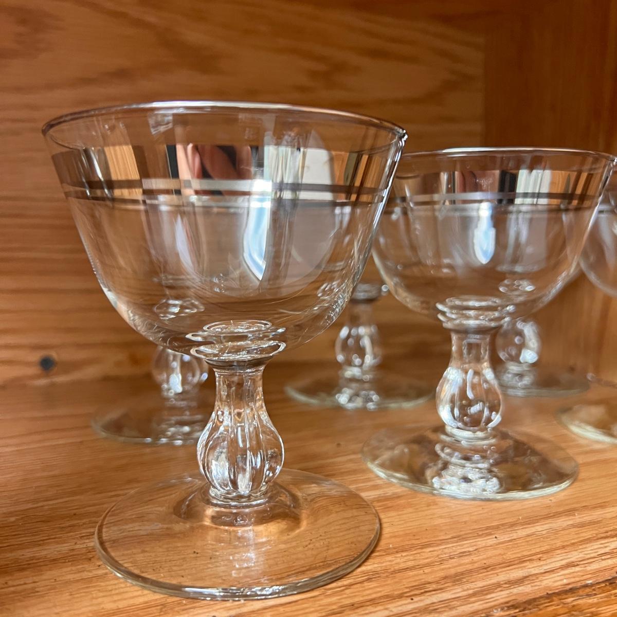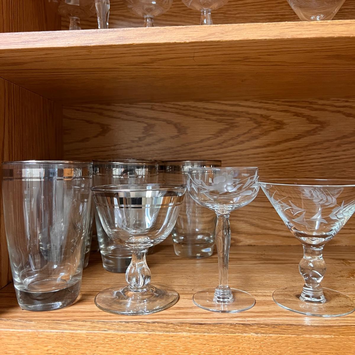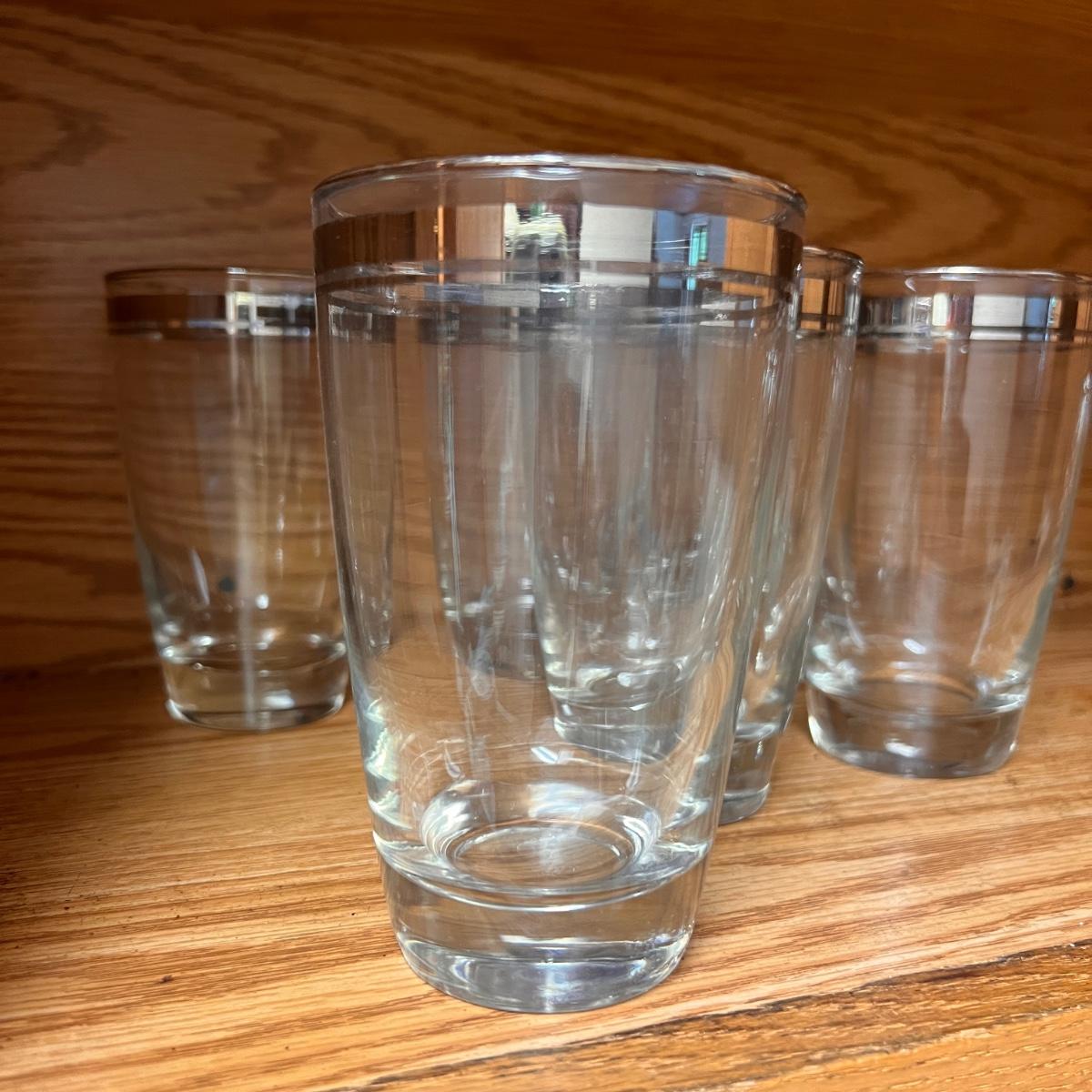 Vintage 4 Style Lot Etched Silver Rim Cocktail Glasses