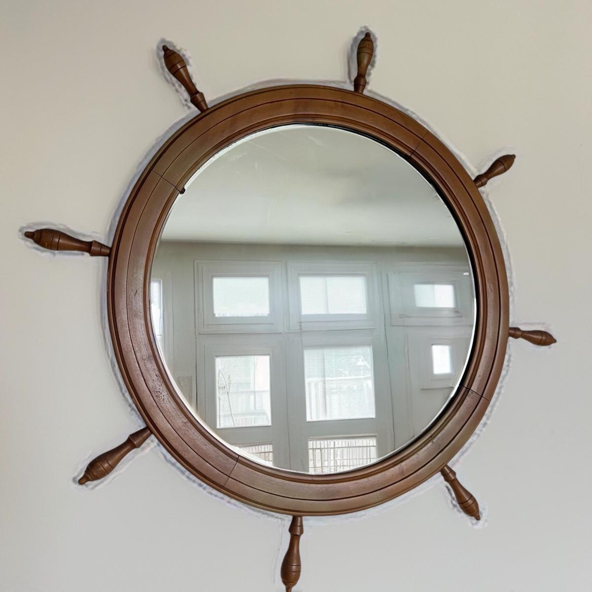 36” Vintage Nautical Ships Wheel Frame Wall Mirror