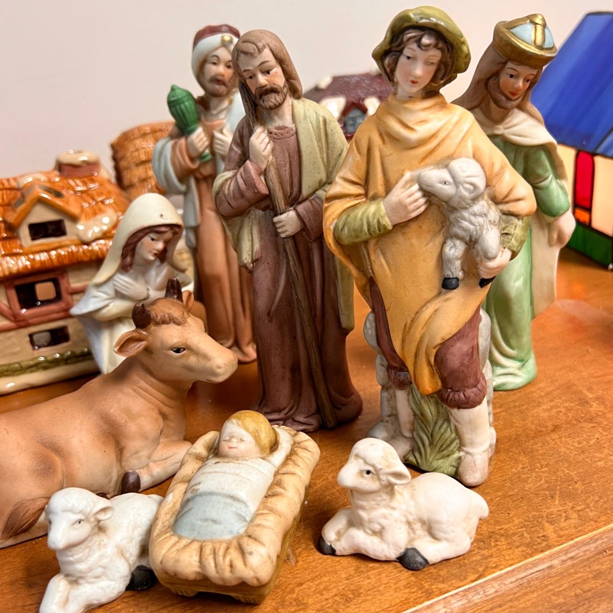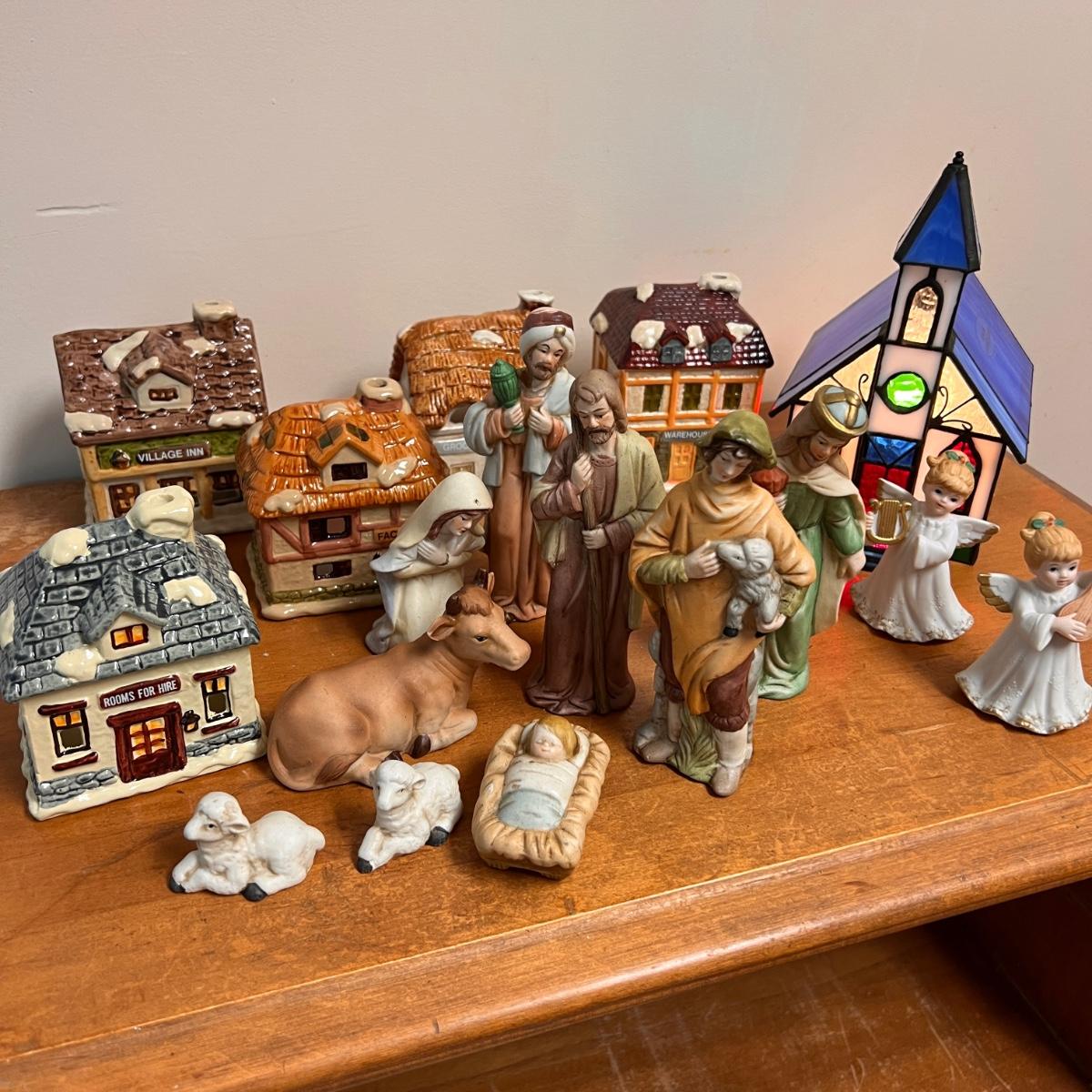 Vintage Christmas Lot -Lefton Angles, Dickens Village, Stained Glass, Nativity
