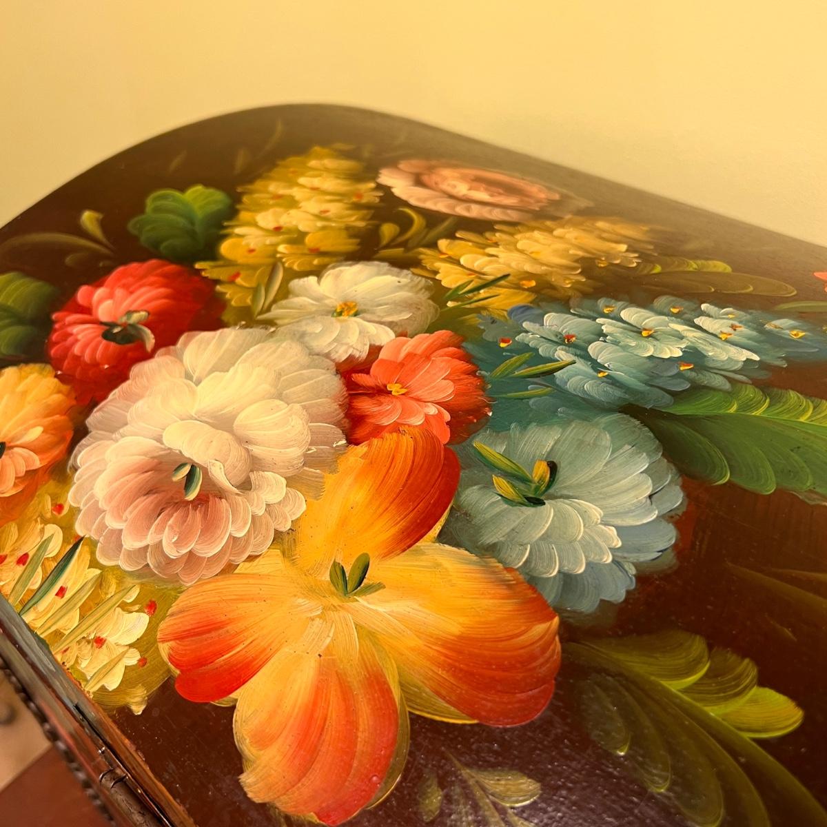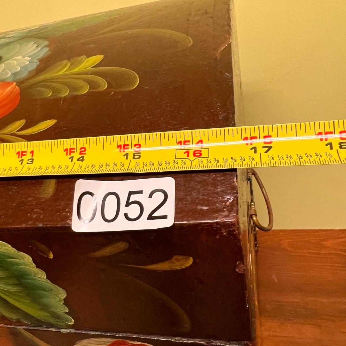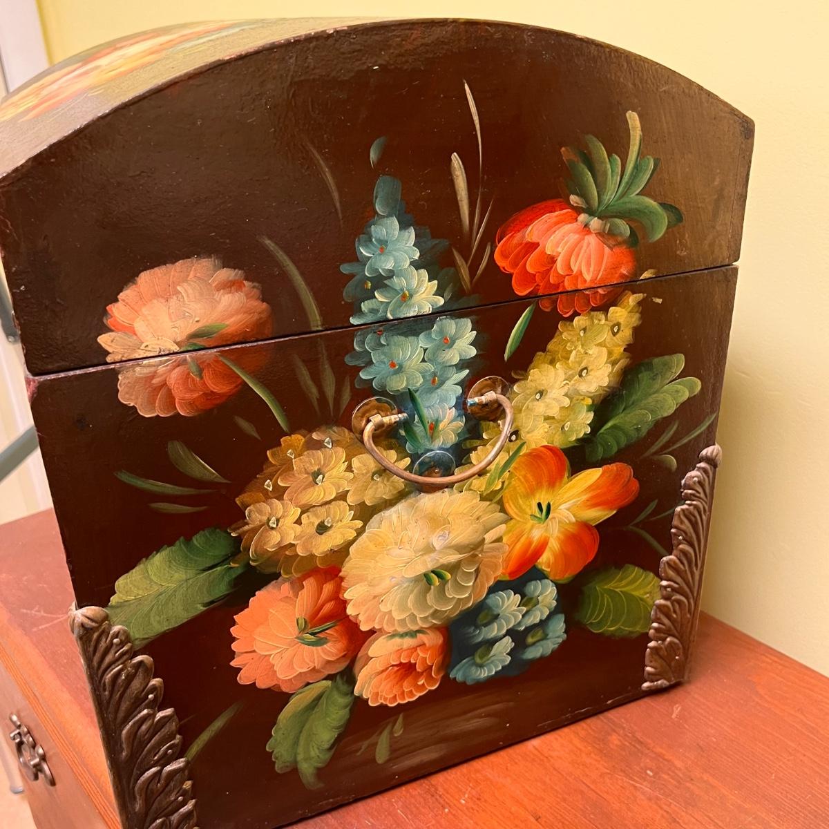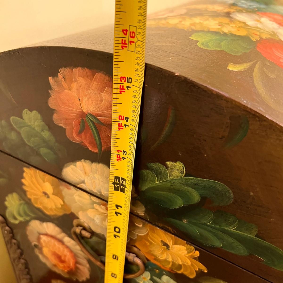 Vintage Wooden Chest With Hand Painted Floral Design Metal Hardware