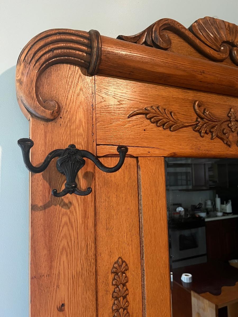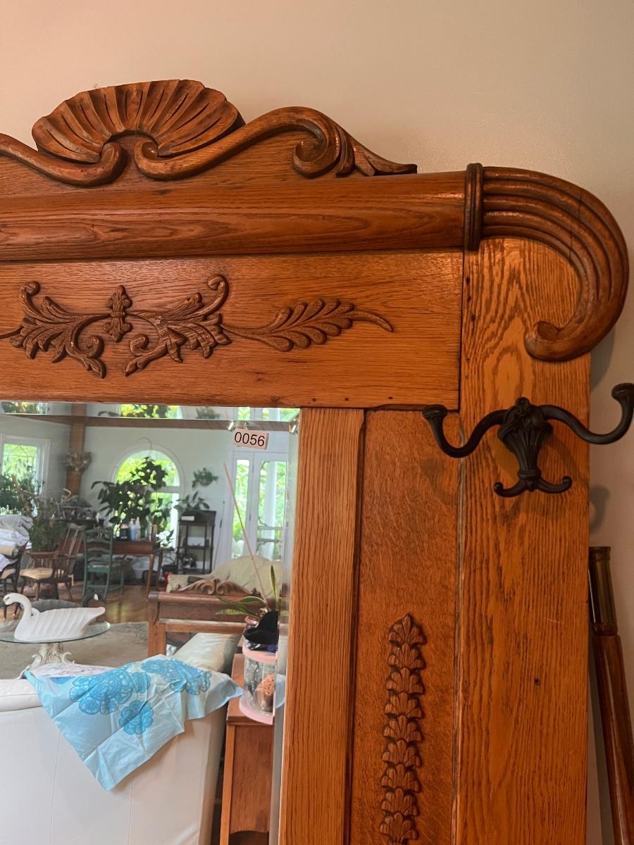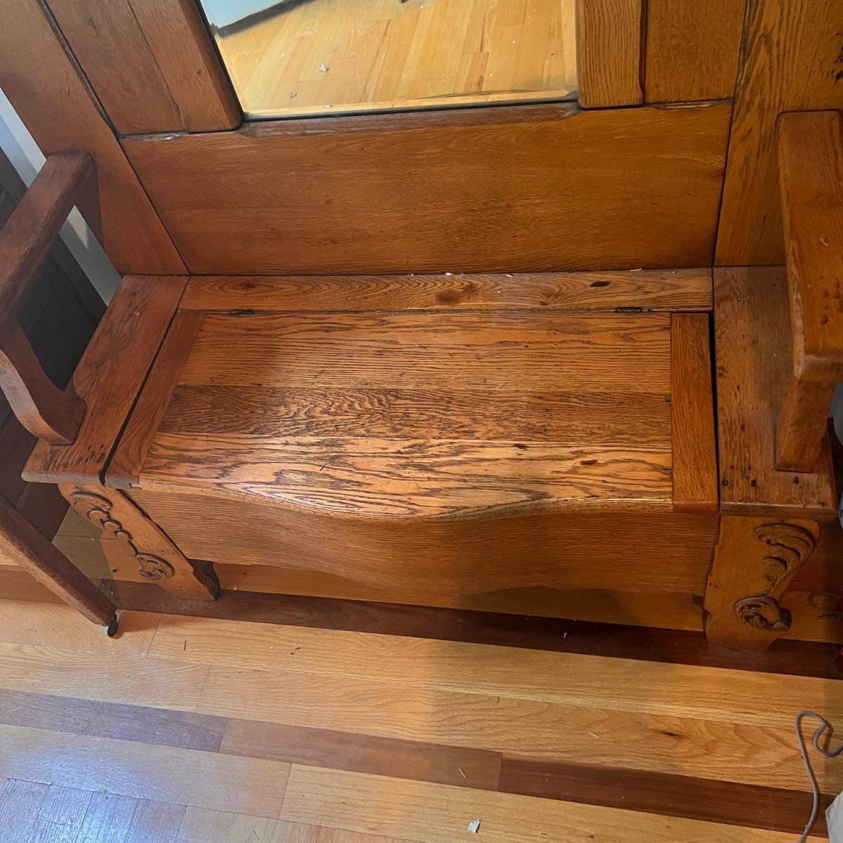 Gorgeous Antique Large Oak Hall Tree Bench w/ Mirror 41wx17dx83h