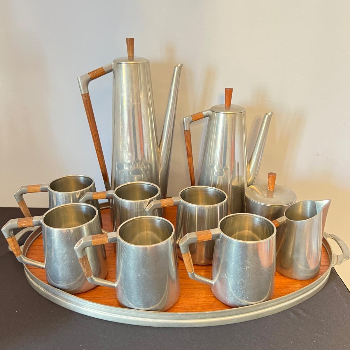 Rare 1960's KMD TIEL for Royal Holland Pewter Coffee Set MCM